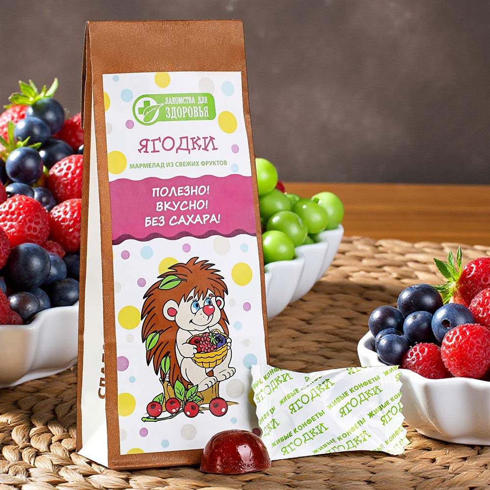 Мармелад «Ягодки» – это правильные сладости для всех детей! Ограничивать малышей в сладком очень трудно – детскому уму не понять, почему они должны есть невкусный суп, если есть такие вкусные конфеты. Однако с помощью мармелада от Конфаэль ограничивать их в сладком не придется. При этом вы можете быть уверены – эти сладости принесут только пользу растущему детскому организму, ведь мармелад не содержит сахара!