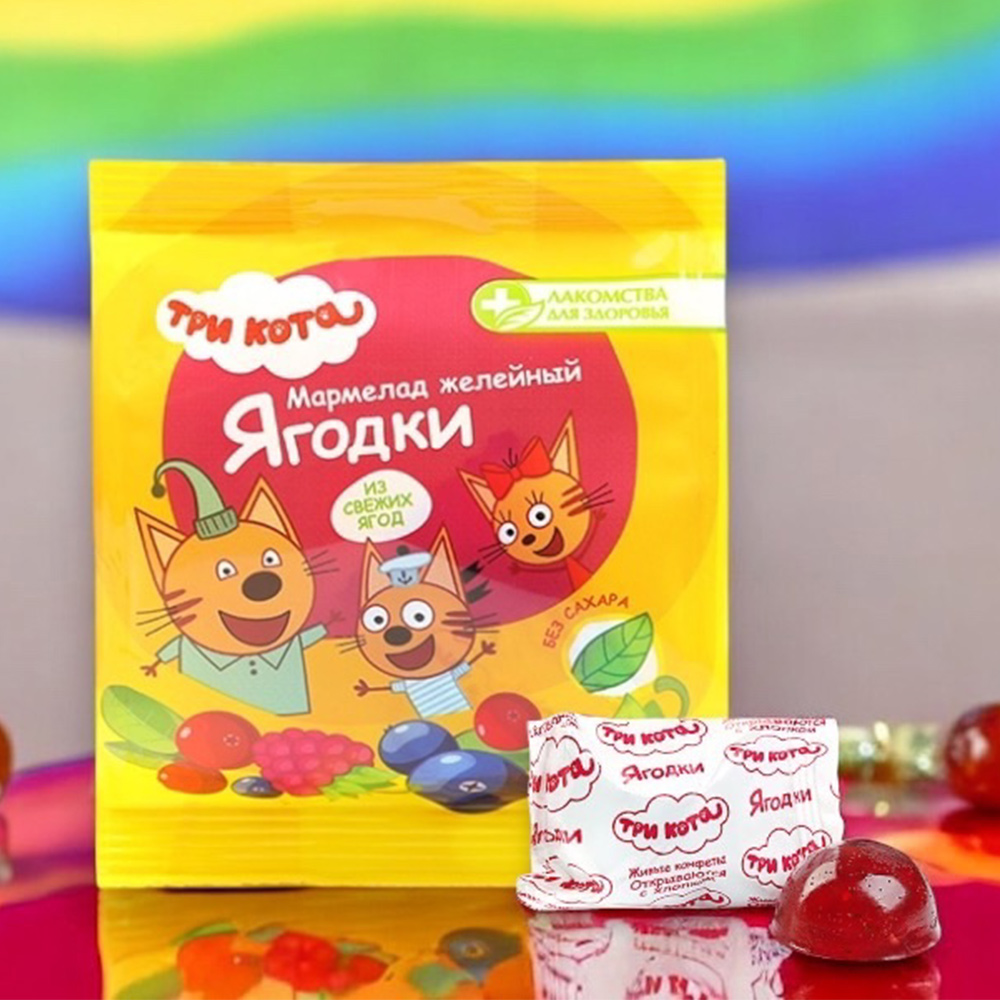 Мармелад «Три кота» лучший выбор для маленьких зрителей и их родителей! Натуральный состав, богатый растительной клетчаткой, без вкусовых добавок и красителей. Без добавления сахара.