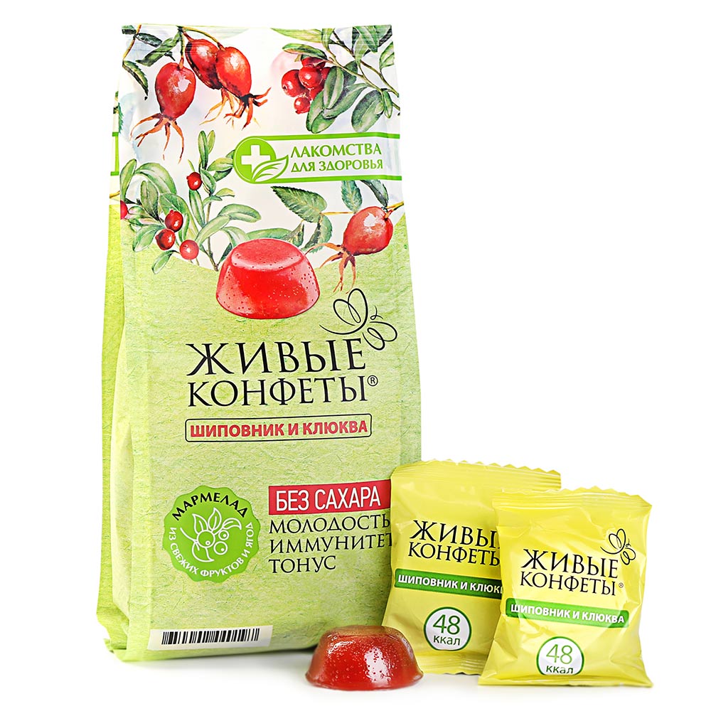 Шиповник и клюква могли бы посоревноваться по количеству всевозможных витаминов и минералов, которые содержат их плоды. Но зачем соревноваться, если можно сообща работать на пользу здоровья человека?! Именно это они и делают в мармеладе из шиповника и клюквы. Этот мармелад без сахара оказывает очень приятный эффект – он регулирует обмен веществ, и нормализует пищеварение. Содержит: каротин, пектин, фосфор, марганец, С, В1, В12.
