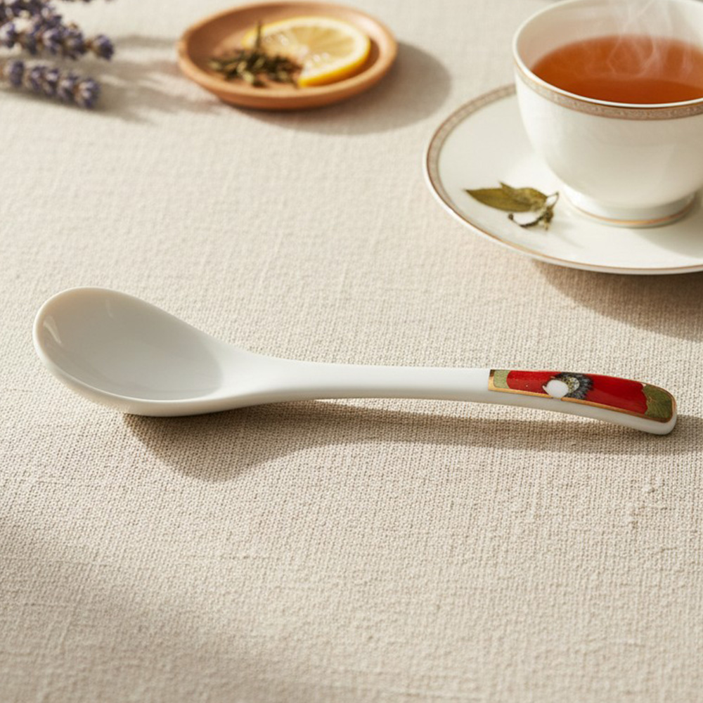 Добавьте нотку восточной эстетики в повседневную сервировку с чайной ложкой «Маки». Нежный рисунок цветущих маков на белоснежной керамике превратит чаепитие в маленький ритуал красоты.