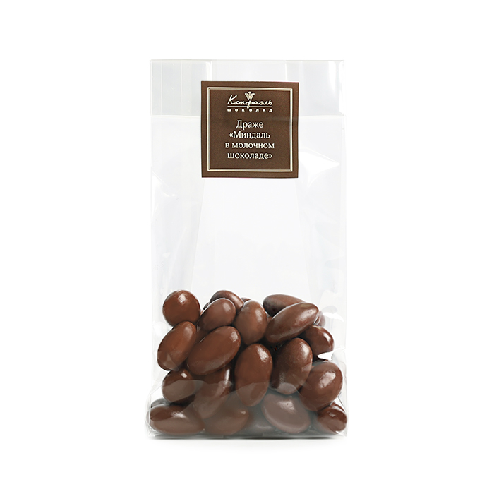 Обжаренный миндаль в слое шоколада, упакованный в элегантную прозрачную коробку с логотипом бренда «Конфаэль», - классический презент по любому поводу, а также идеальное дополнение к основному подарку.
