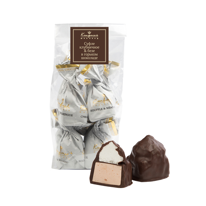 Сочетание клубничного суфле и воздушного безе в горьком шоколаде - классика восхитительных вкусов!