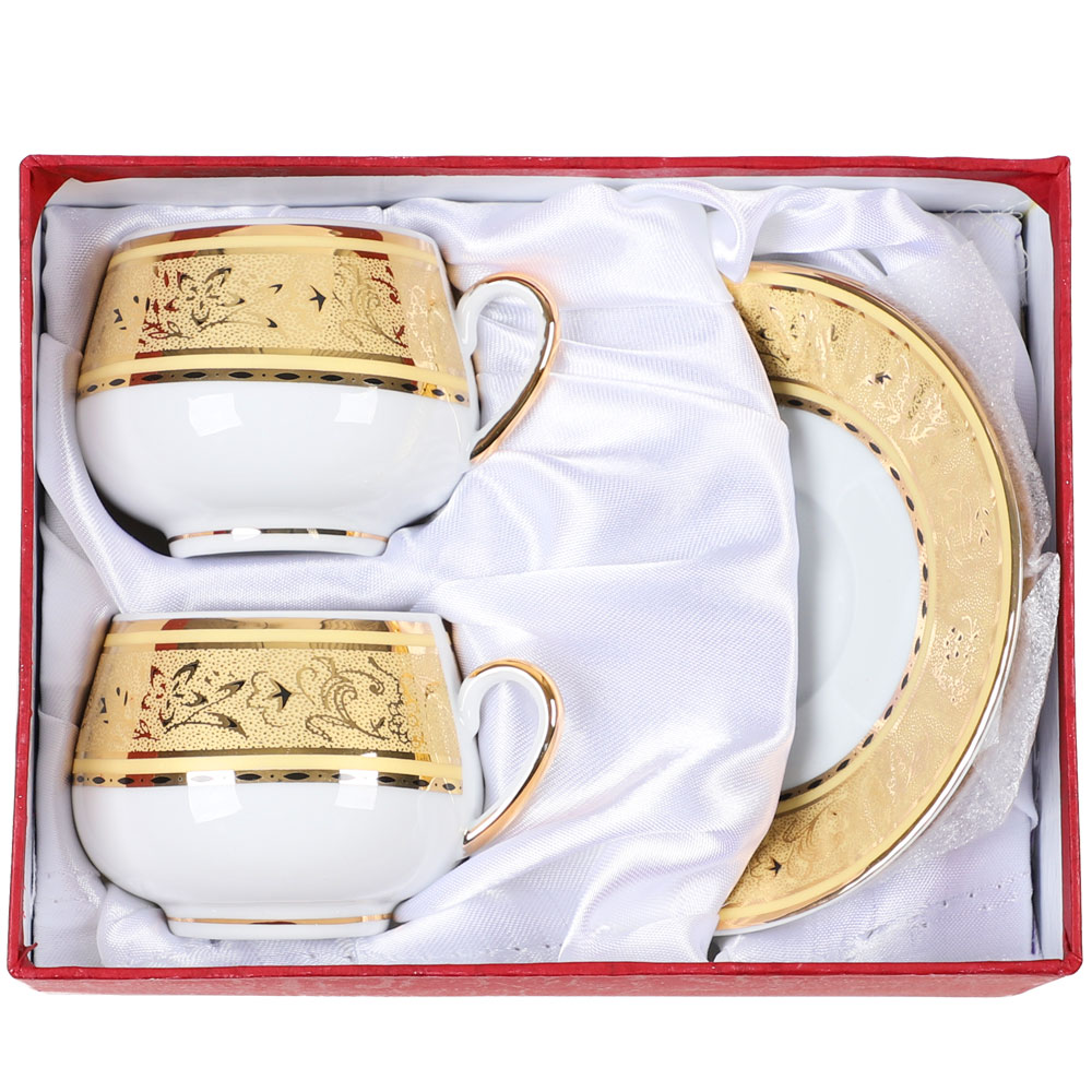 Идеальная комплектация: всё необходимое для двоих — 2 чашки и 2 блюдца. Достаточно для романтического завтрака или дружеской беседы за чашечкой ароматного напитка.