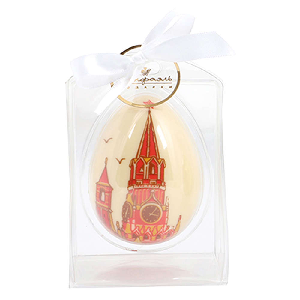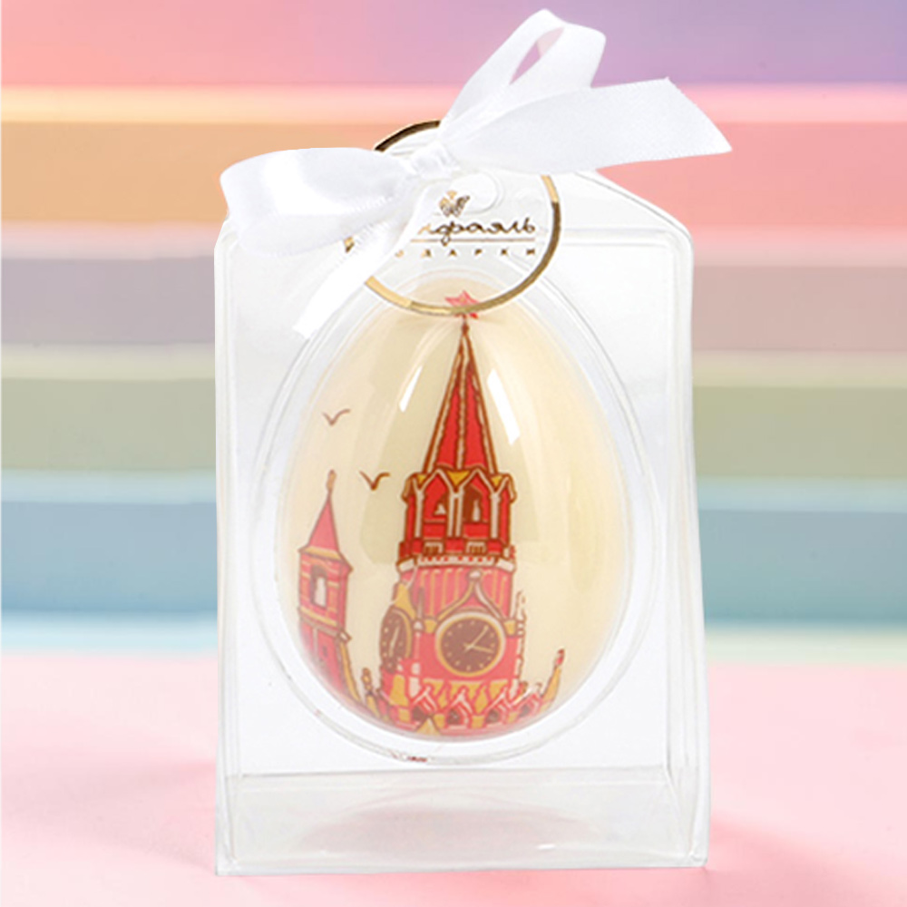 Яйцо «Кремль», изготовленное из белого шоколада и упакованное в прозрачный футляр, - очень вкусный десерт и оригинальный сувенир для ваших близких и друзей.