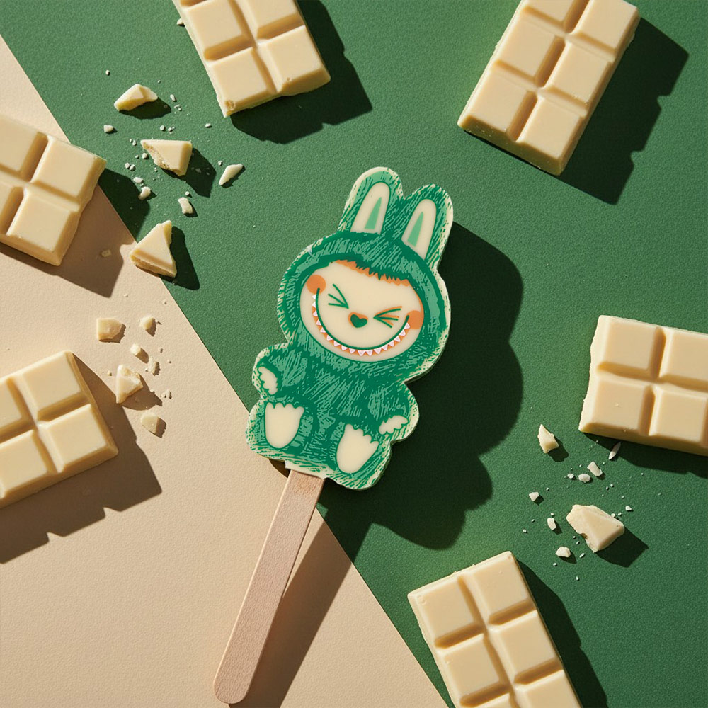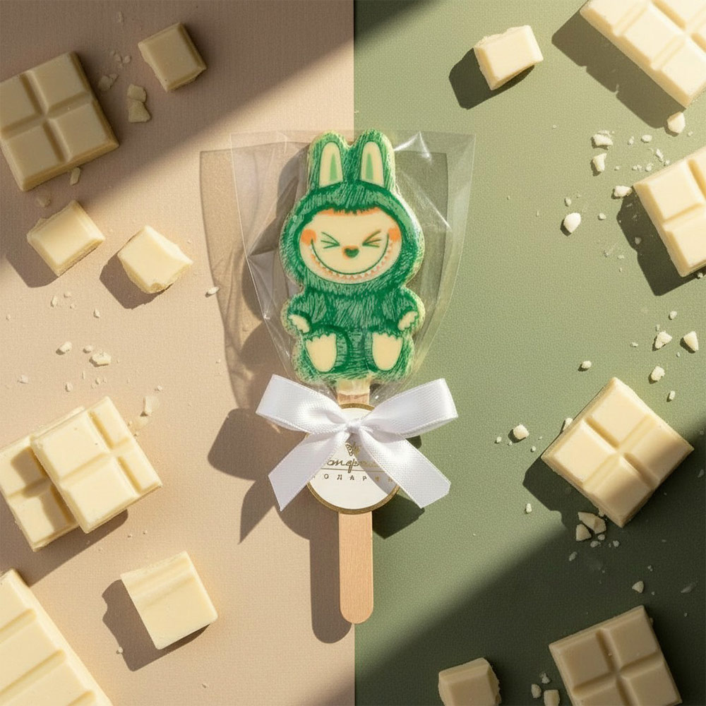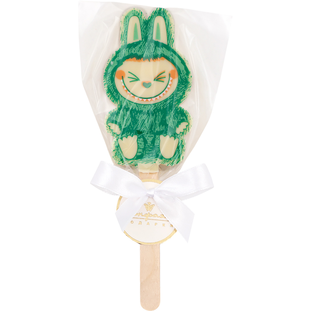 "Лабубушка" шоколад белый на палочке (зеленый декор)19г