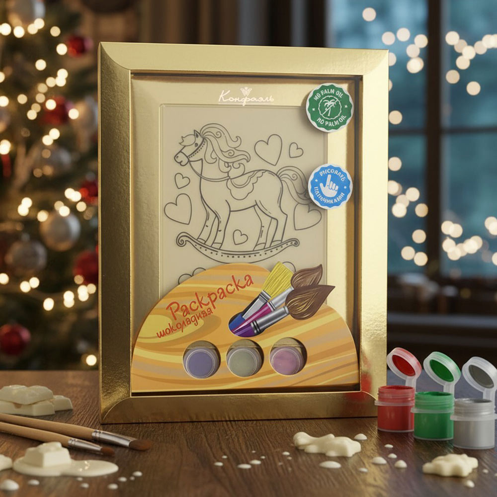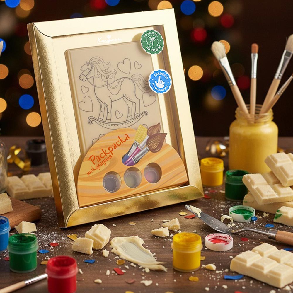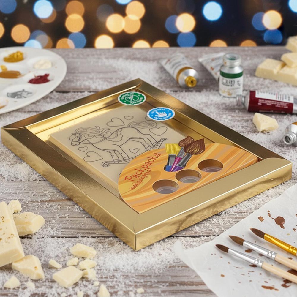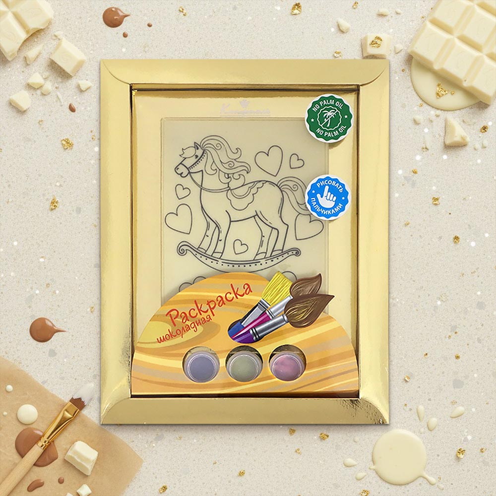 Сладкая радость: шоколадная раскраска "Лошадка" из белого шоколада.