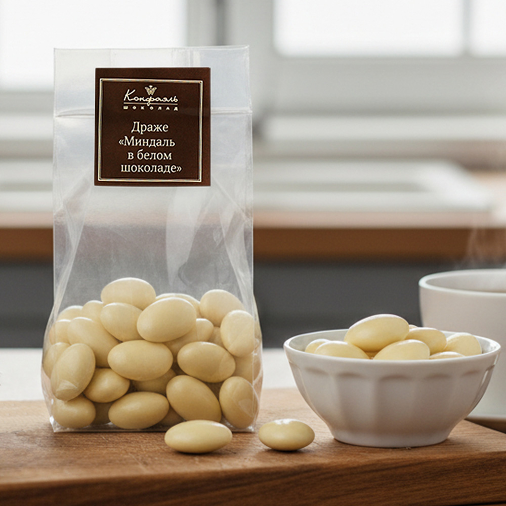 ядра орехов миндаля, какао-масло, молоко сухое цельное, молоко сухое обезжиренное, лактоза, сахар, эмульгатор (лецитин соевый), ароматизатор («Ванилин»), глазирователь (капол)