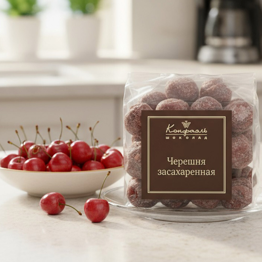 черешня, сахар, глюкозно-фруктовый сироп, вишневый сок, краситель (антоцианы), декстроза, регулятор кислотности (лимонная кислота), ароматизаторы, консервант (диоксид серы)