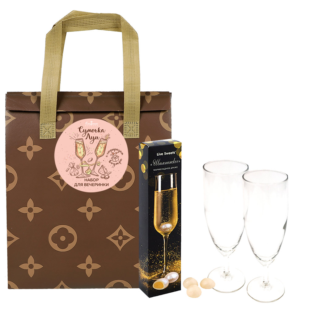Набор для вечеринки: 2 бокала для шампанского, драже со вкусом шампанского 100г
