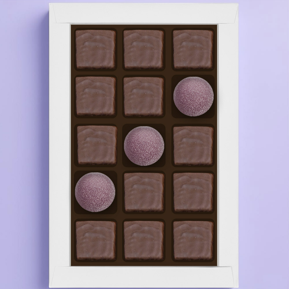 Конфеты «Суфле» в горьком шоколаде ( ванильное), мармелад желейный со вкусом «Голубика»