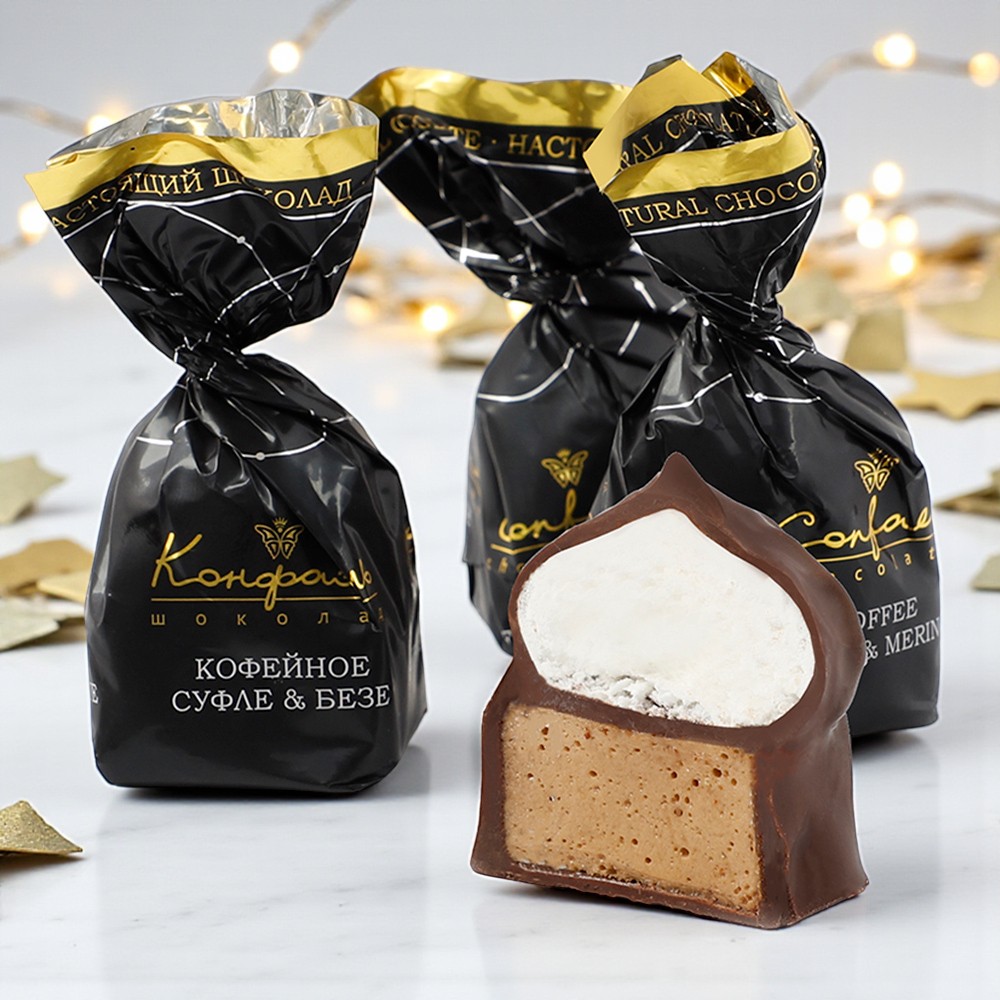 Новогодний набор двуслойных конфет суфле + безе в горьком шоколаде 215г