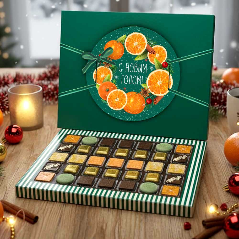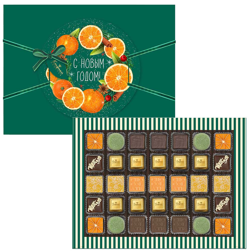 Мармелад желейный «Апельсиновый», "Ассорти" молочный шоколад с кремовой начинкой со вкусом фисташки с вафельной крошкой, "Ассорти" оранжевый шоколад - сливочная начинка Манго-Маракуйя, "Ассорти" белый шоколад с декором- кремовая начинка "Миндаль", конфеты «Суфле» в горьком шоколаде (апельсиновое), мармелад желейный со вкусом «Зеленая дыня», шоколадные конфеты «Ассорти» со сливочными начинками(в фольге)