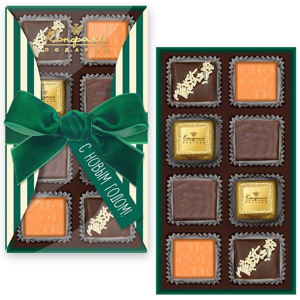 Состав: шоколадные массы – сахар, масло какао, молоко цельное сухое, сухое обезжиренное молоко, какао тертое, какао-порошок, сыворотка молочная сухая, пахта сухая, молочный жир, паста ореховая из ядер фундука, эмульгаторы (соевый лецитин, Е476), соль, натуральная ваниль, ароматизаторы; начинки – сахар, патока, белок яичный порошкообразный, молоко сухое, масла растительные рафинированные дезодорированные (подсолнечное, рапсовое, оливковое; масло сладко-сливочное, молоко сухое обезжиренное), молоко сгущенное (молоко цельное, сахар (сахароза, лактоза)), масло сладко - сливочное, какао тертое, какао масло, клубника сушеная, кумкват сушеный, цукаты лимонных корочек, папайя сушеная, ананас сушеный, финики, чернослив, абрикос сушеный, ядра орехов фундука, ядра орехов миндаля, стабилизатор (мальтодекстрин), желирующий агент (агар), коньяк (дистиллят коньячный, вода, сахар, пищевой краситель «Карамельный колер""), спирт этиловый ректификованный, консервант (сорбиновая кислота), регулятор кислотности (лимонная кислота), эмульгаторы (лецитин соевый, Е471), сухой сок моркови, сухой сок апельсина, экстракт маракуйи, ароматизатор. Внимание! В продукте возможно наличие фрагментов фруктовых косточек (кураги натуральной, фиников натуральных, чернослива натурального).