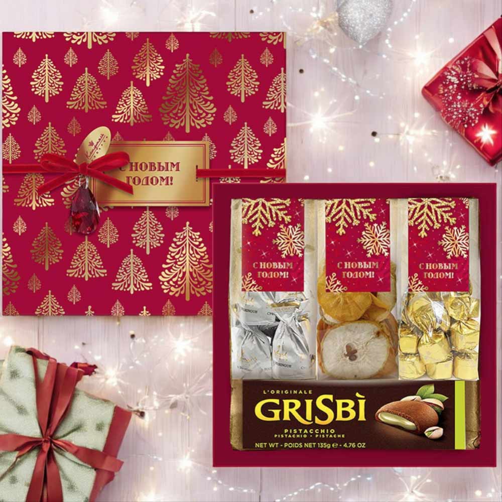 Новогодний набор с конфетами суфле-безе, ассорти, фруктовые чипсы, печенье 500г