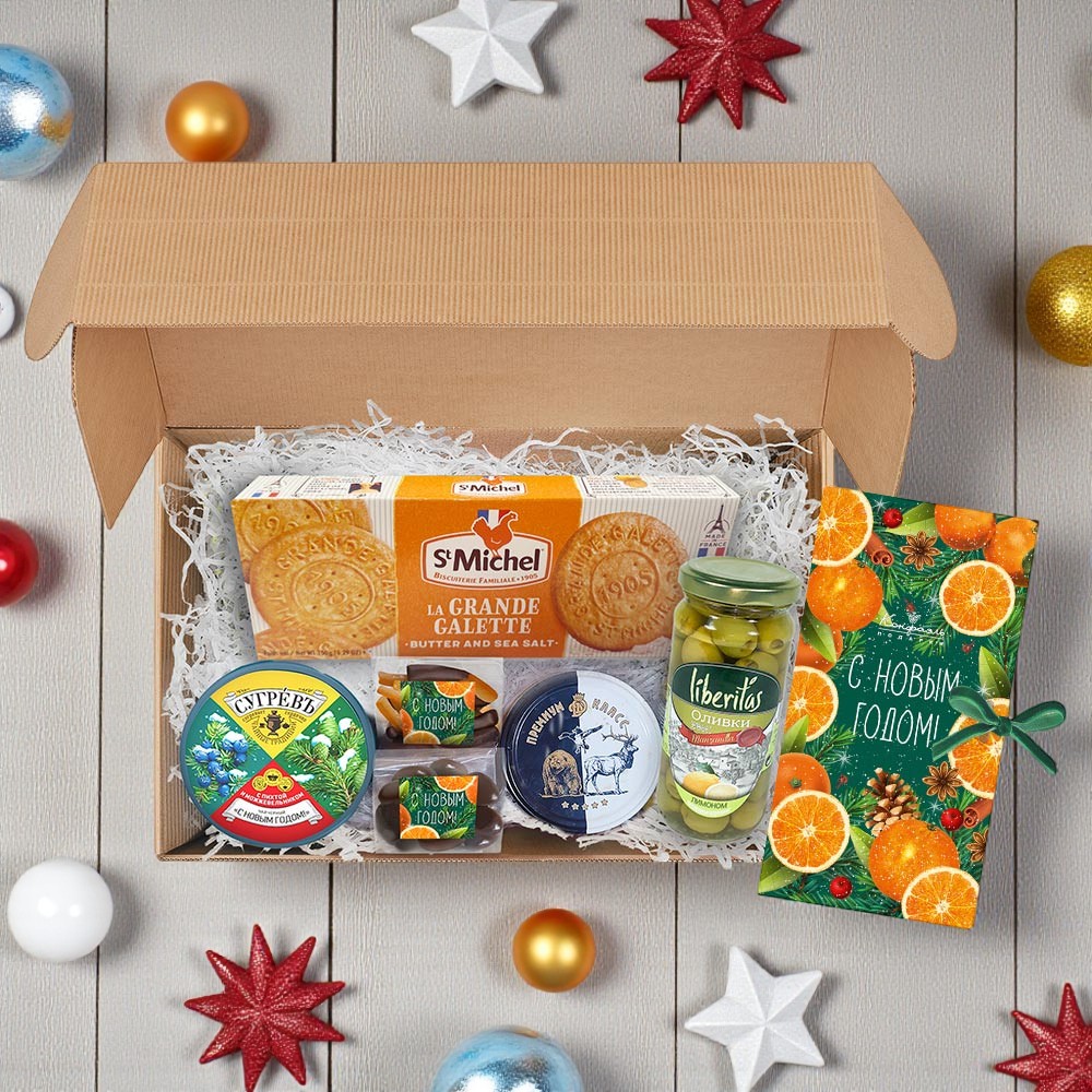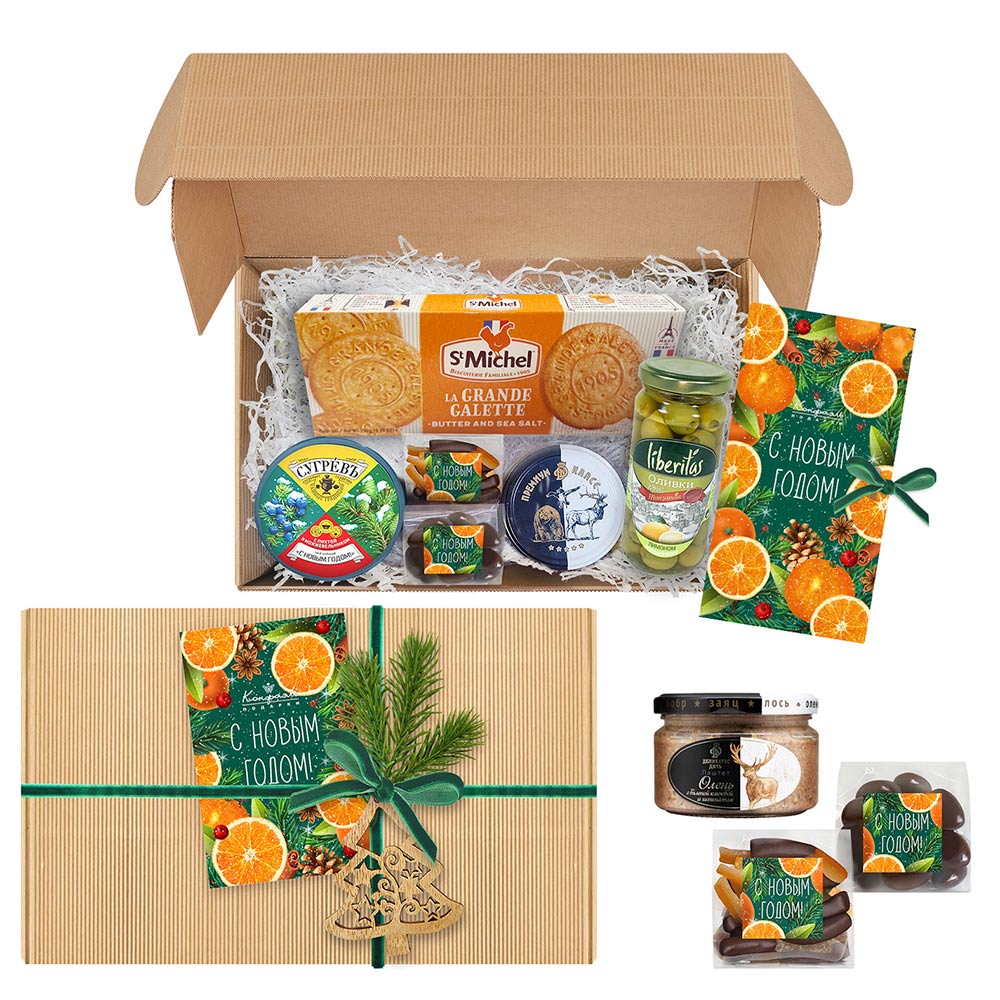 "Новогодний набор": шоколад, драже, конфеты, оливки, чай, риет 805г
