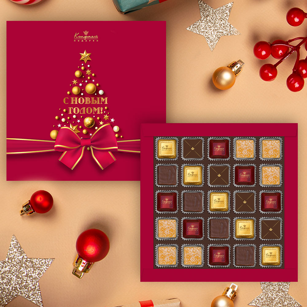Если хотите поразить своих близких приятным сюрпризом и обеспечить праздник особым очарованием, обратите внимание на наш новогодний набор шоколадных конфет.