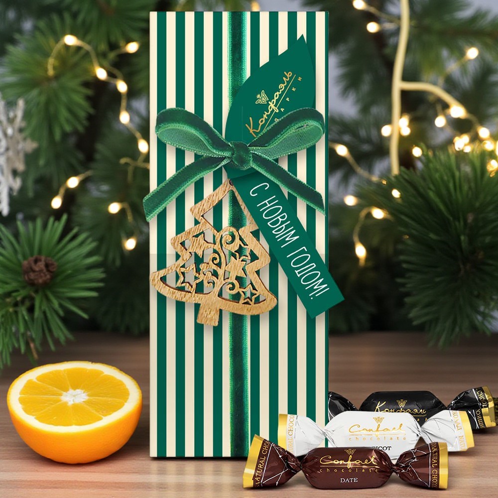Состав: шоколадная масса – сахар, тертое какао, масло какао, какао-порошок, эмульгатор (лецитин соевый), натуральная ваниль; начинки – сахар, патока, молоко сгущенное(молоко цельное, сахар (сахароза, лактоза)), какао-масло, стабилизатор (мальтодекстрин), коньяк (дистиллят коньячный, вода, сахар, натуральный пищевой краситель «сахарный колер»), чернослив, финики, абрикосы сушеные. Внимание! В продукте возможно наличие фрагментов фруктовых косточек. Продукция производится на предприятии, где используются арахис, кунжут, орехи, яичные и молочные продукты, злаки, содержащие глютен