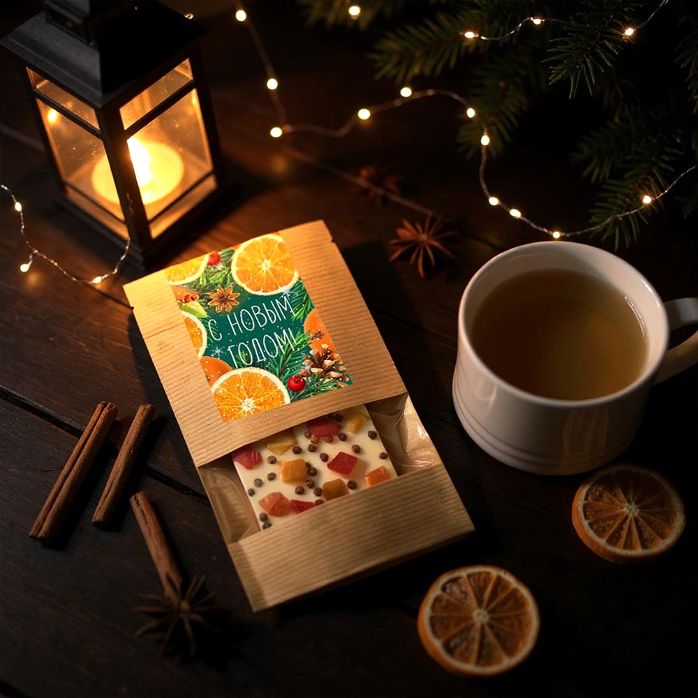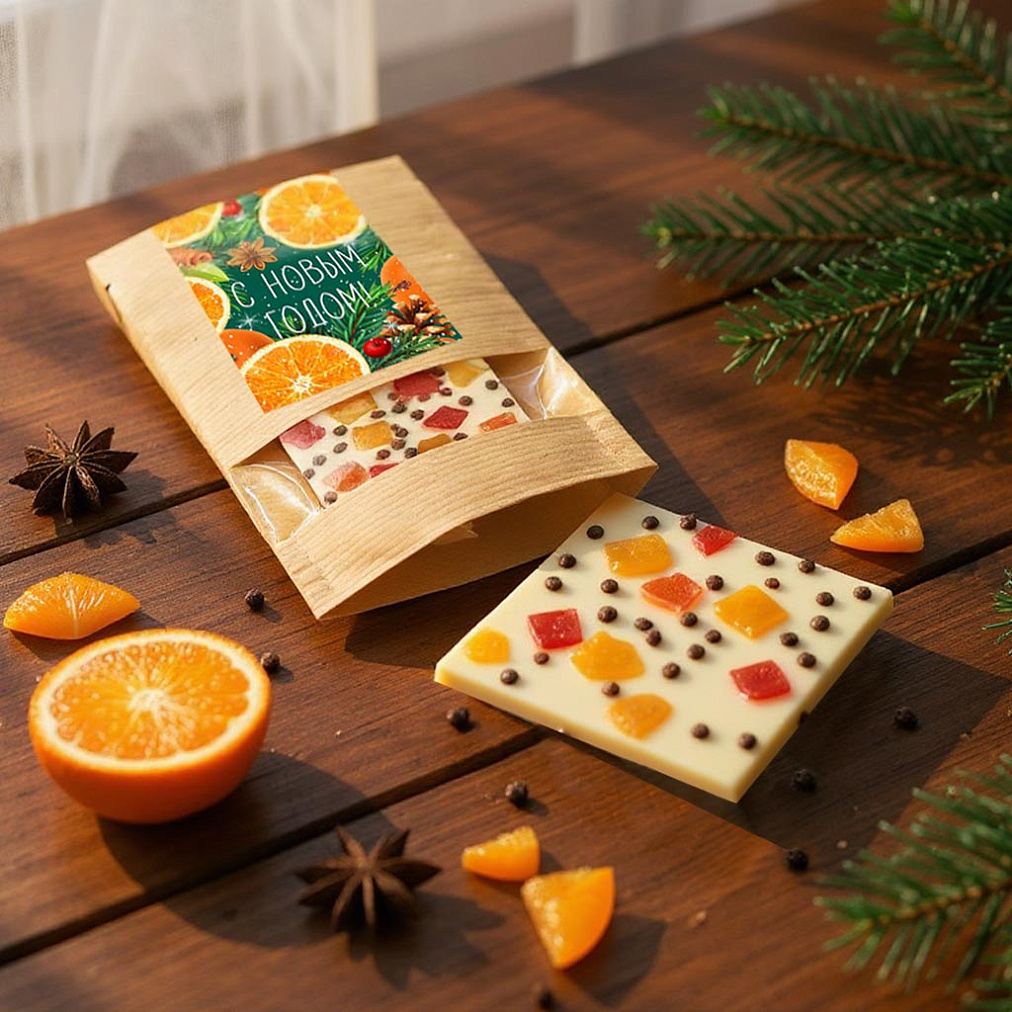 Шоколад белый с цукатами папайи и рисовыми шоколадными шариками
