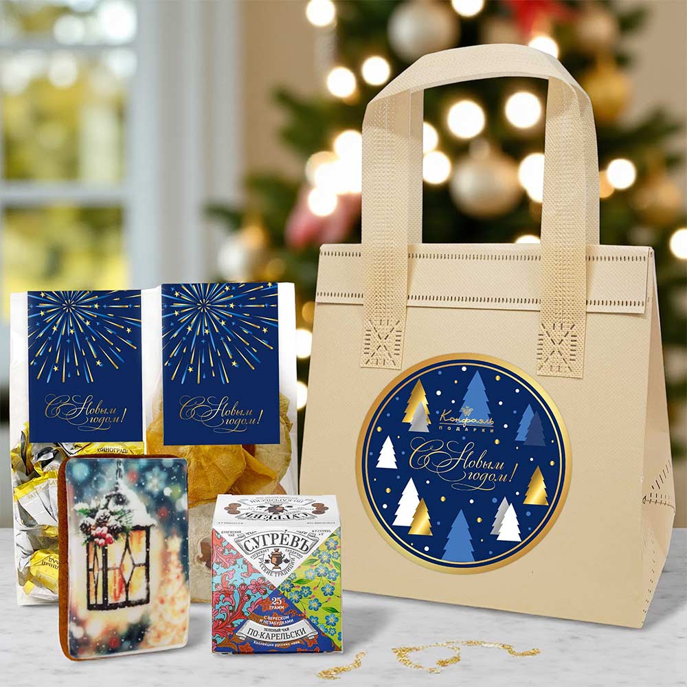 Новогодний набор: мармелад, фруктовые чипсы, пряник, чай 325г в термопакете