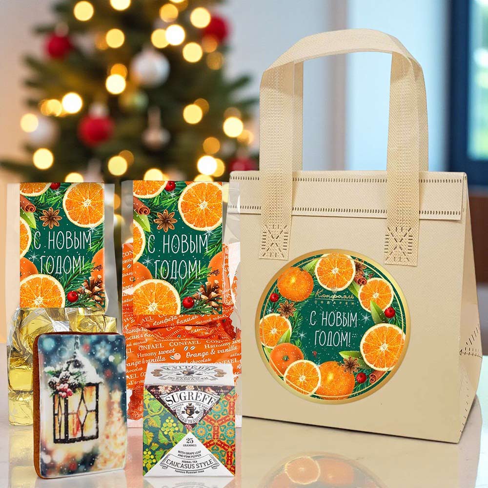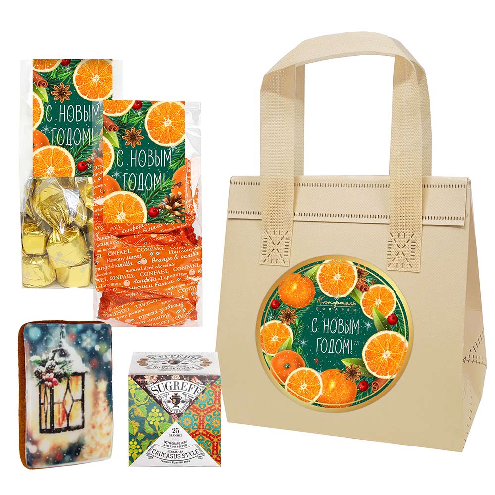Новогодний набор: конфеты шоколадные, пряник, чай 375г в термопакете