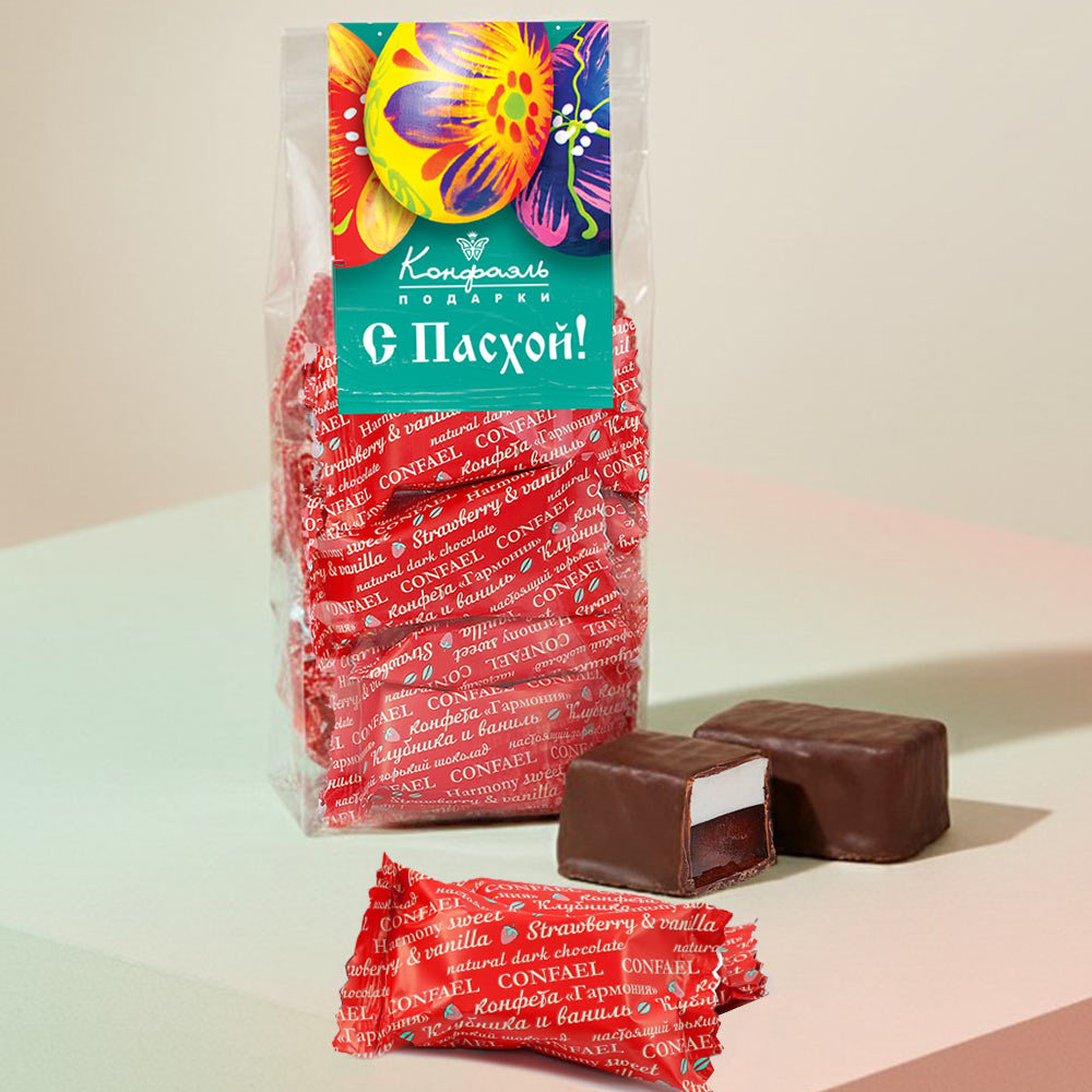 Пасхальный набор двуслойных конфет суфле + клубничный мармелад в шоколаде