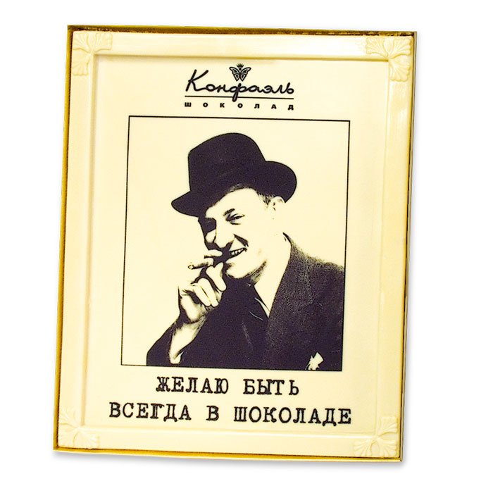 Это лакомство премиум-класса изготовлено из отборных сортов белого шоколада, упаковано в крафт-коробку и украшено шутливой надписью.