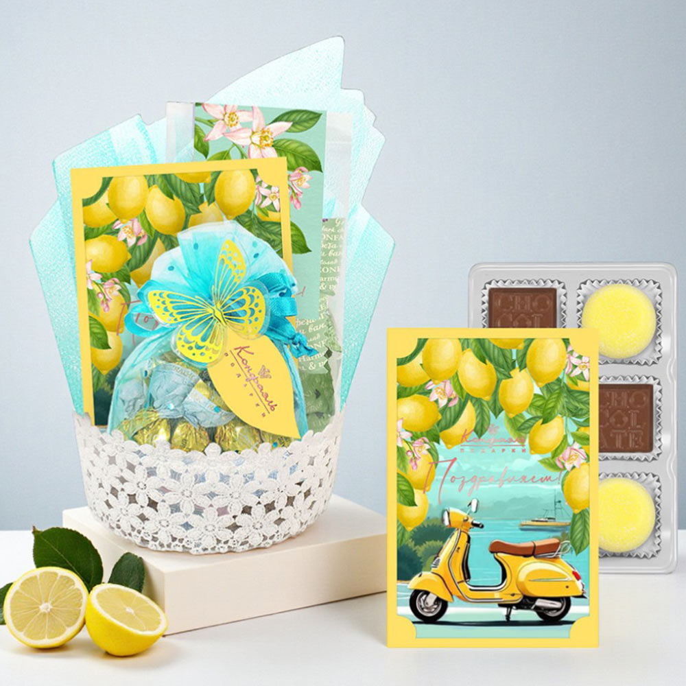 Поздравление 06/ Шоколадные конфеты «Ассорти» с кремовой начинкой , мармелад желейный со вкусом «Банан»/ 80г