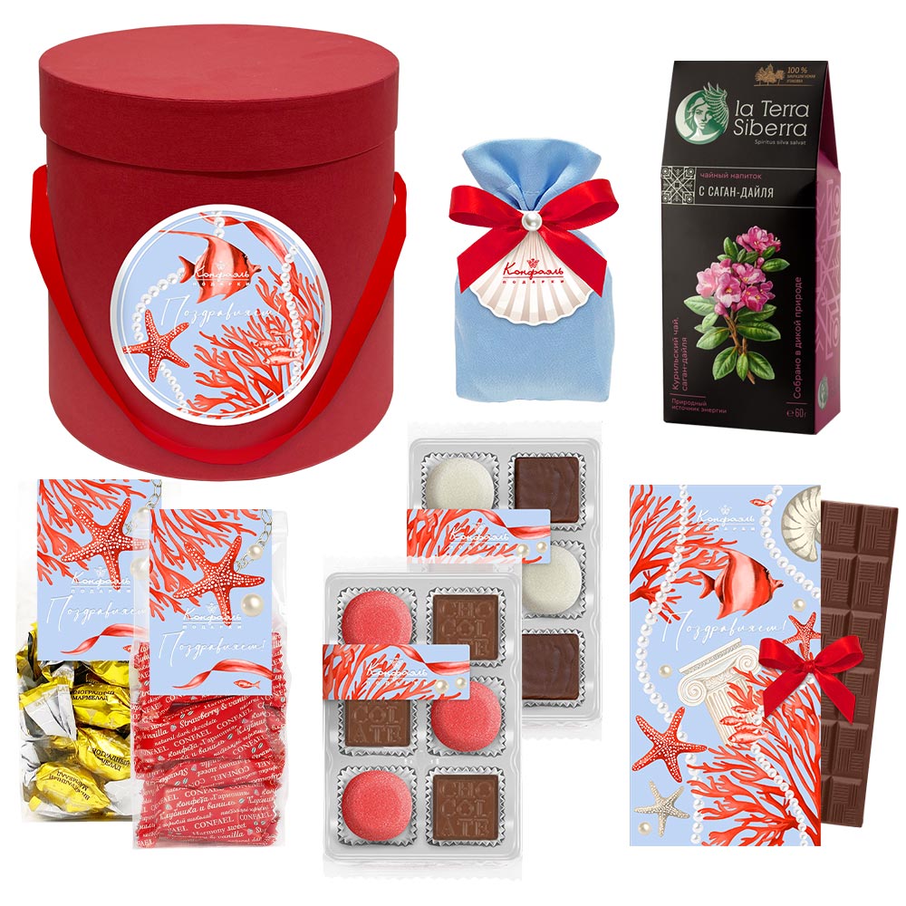 Подарочный набор: драже, мармелад, ассорти, шоколад, чай