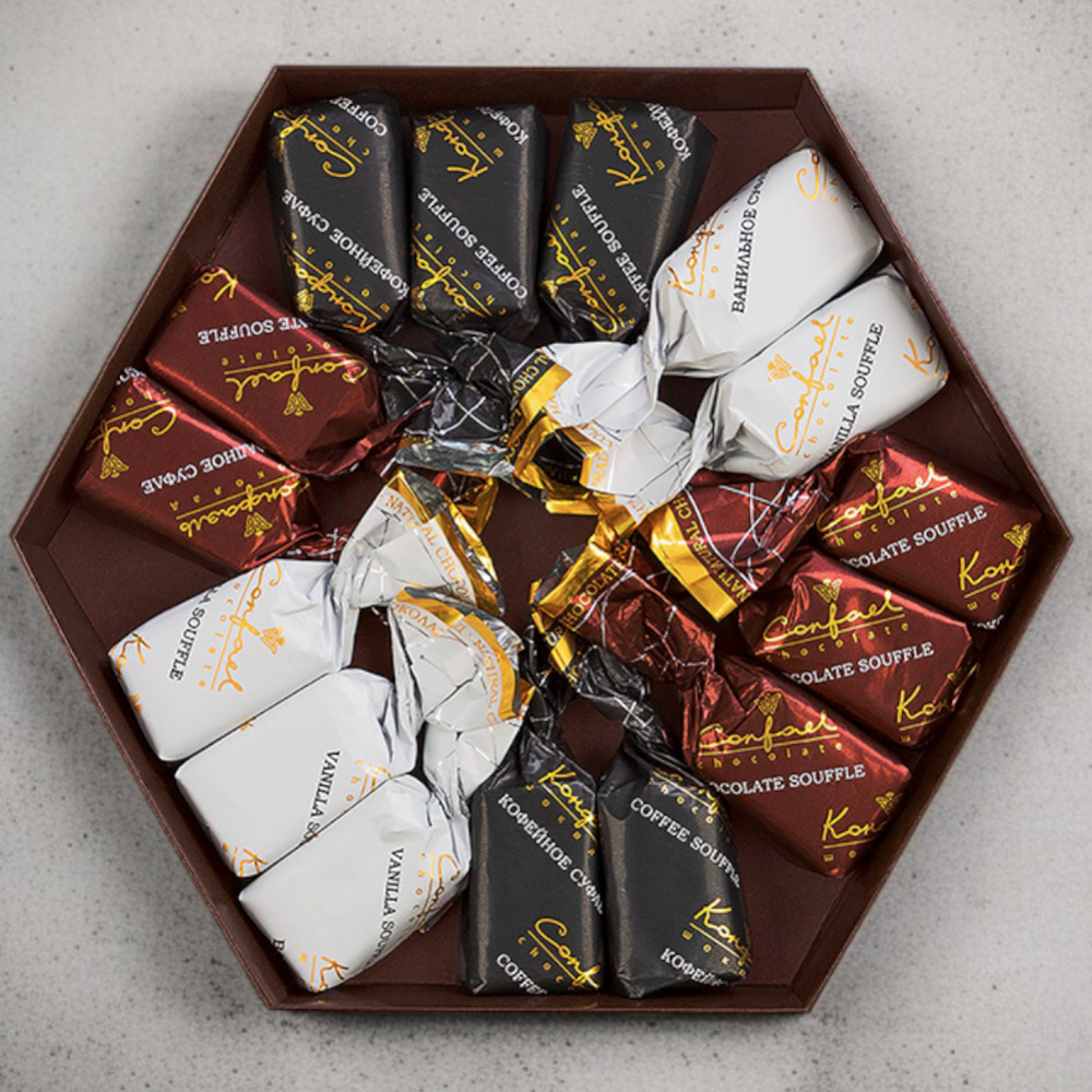 Настоящий шоколад не содержит заменителей какао-масла, пальмового, масла ши и других вредных жиров, а также какао-порошка, что отличает "Конфаэль" от большинства современных производителей.