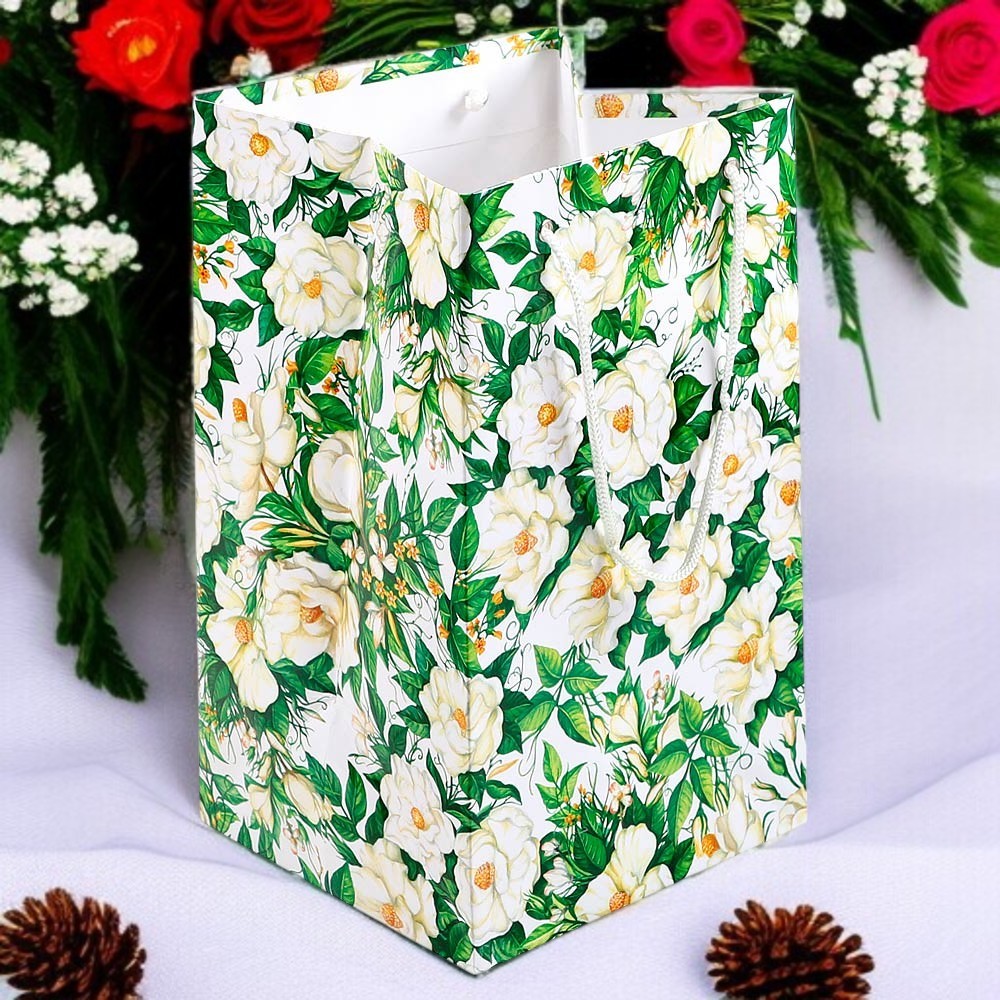 Предлагаем Вам очаровательную зеленую подарочную упаковку с изображением нежных цветов шиповника размером 30х18х16,5 см. Эта замечательная деталь мгновенно вдохнёт свежие нотки весны и заставит улыбнуться даже самого строгого адресата!