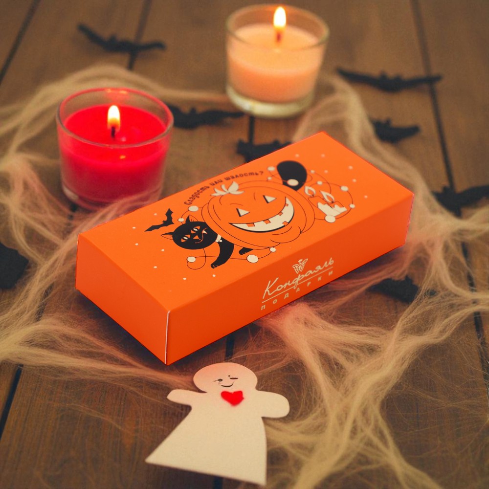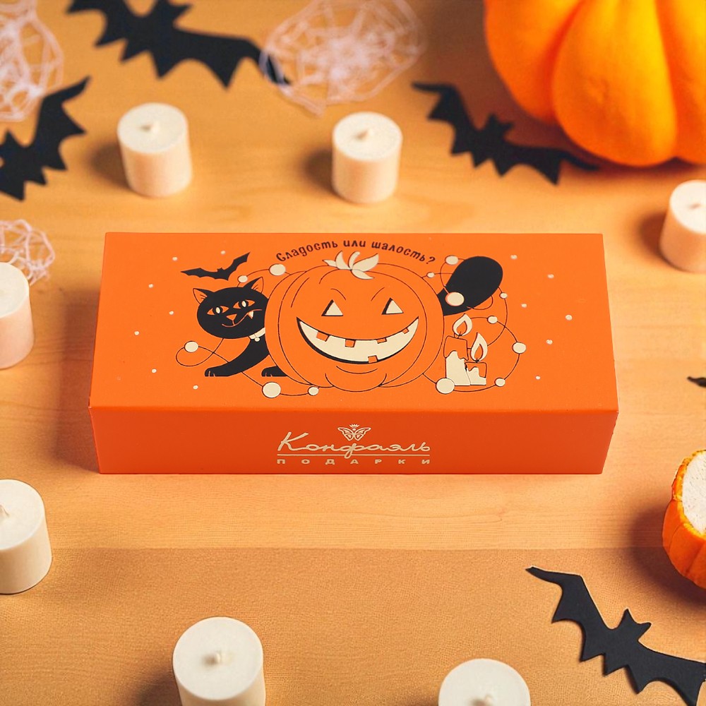 шоколадные массы: сахар, какао-масло, какао тертое, молоко сухое цельное, молоко сухое обезжиренное, лактоза, эмульгатор (лецитин соевый), ароматизатор; начинки: сахар, патока, молоко сгущенное (молоко цельное, сахар, лактоза), сливки сгущенные с сахаром (сливки нормализованные, сахар, лактоза), масло растительное, мальтодекстрин, коньяк (дистилят коньячный, вода, сахар, натуральный краситель Карамельный коллер), консервант сорбиновая кислота, эмульгаторы: лецитин соевый, Е471, экстракт маракуйи, натуральный краситель Паприка; декор – красители (Е100, Е132, Е171).