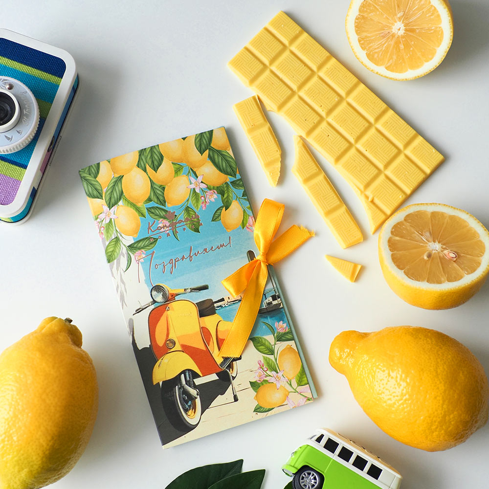 Порадуйте близких оригинальным вкусом и сделайте своё поздравление по-настоящему запоминающимся. Закажите белый шоколад с лимоном «Поздравляем» прямо сейчас!