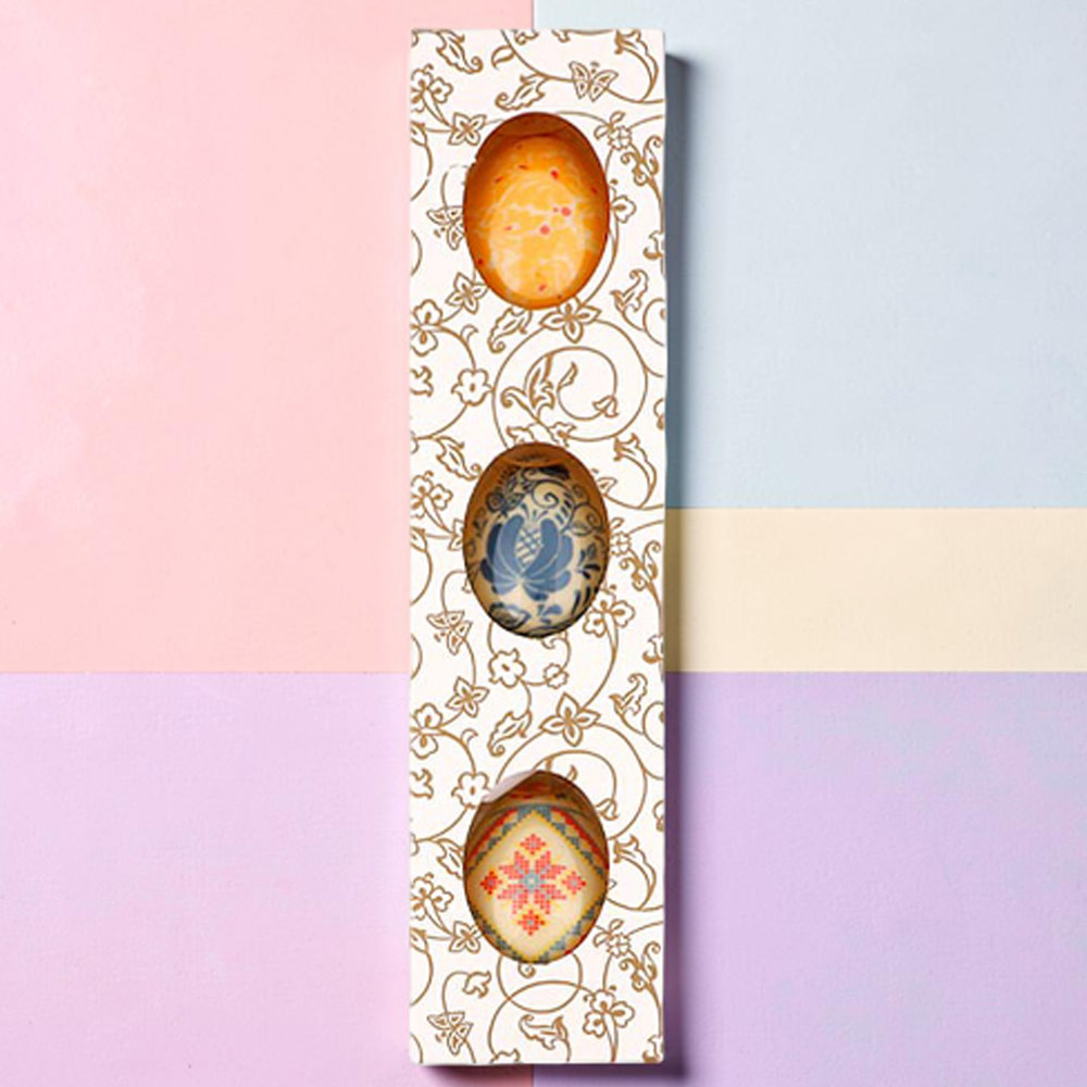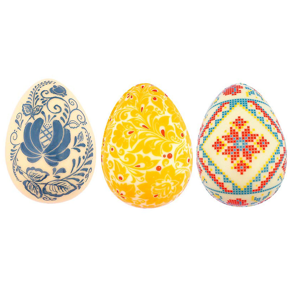 Среди пасхальных подарков почётное место займёт живописная упаковка шоколадных яиц «Российские орнаменты».