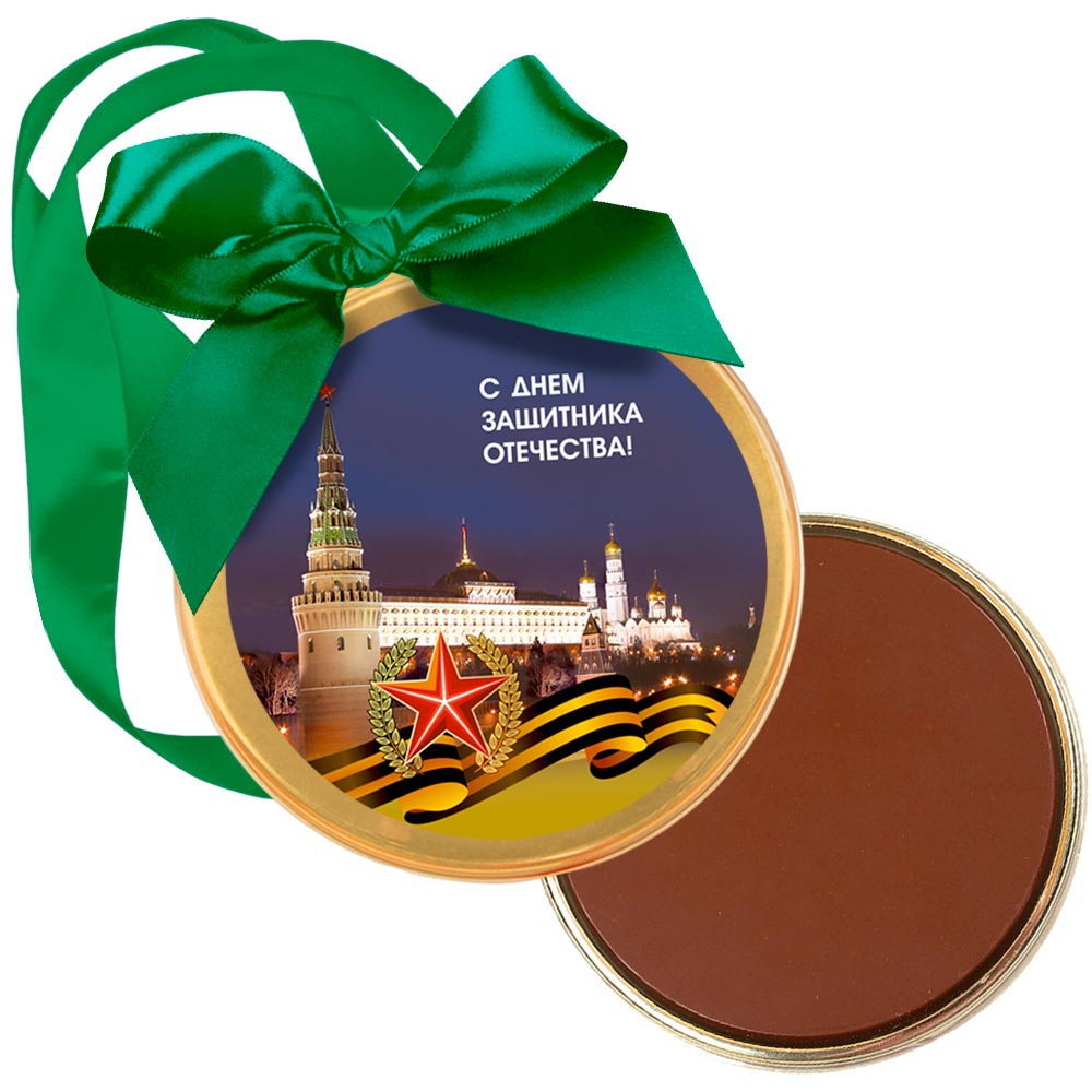 "С Днём защитника Отечества" медаль молочный шоколад 70г (Кремль)