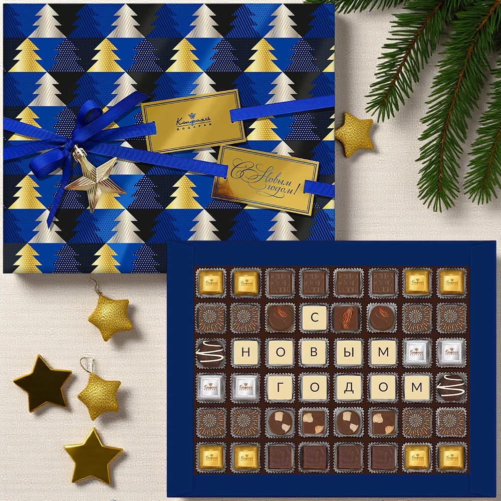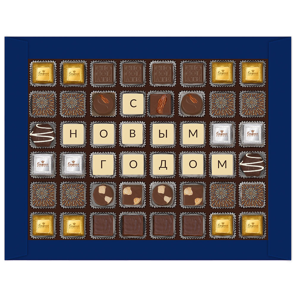 Состав: шоколадные массы - сахар, масло какао, молоко цельное сухое, сухое обезжиренное молоко, какао тертое, какао-порошок, сыворотка молочная сухая, пахта сухая, молочный жир, паста ореховая из ядер фундука, эмульгаторы (соевый лецитин, Е476), соль, натуральная ваниль, ароматизаторы; начинки - сахар, патока, фруктоза, масло какао, тертое какао, молоко сгущенное (молоко цельное, сахар (сахароза, лактоза)), сухое обезжиренное, сливки сгущенные с сахаром (сливки нормализованные, сахар (сахароза), лактоза), молоко сухое цельное, масла растительные рафинированные дезодорированные (подсолнечное, рапсовое, оливковое; масло сладко-сливочное, молоко сухое обезжиренное),жир специального назначения (масло ши, рапсовое масло, соевое масло), масло сладко-сливочное, белок яичный, натуральные концентрированные соки (апельсин), ядра орехов миндаля, стабилизатор (мальтодекстрин), желирующие агенты (агар), желатин говяжий, коньяк (дистиллят коньячный, вода, сахар, пищевой краситель «Сахарный колер»), спирт этиловый ректификованный,консервант (сорбиновая кислота), регулятор кислотности (лимонная кислота), эмульгаторы (лецитин соевый, Е471), ароматизаторы, декор - пищевые красители (Е132, Е171, «Куркумин», красный свекольный), Внимание! Продукция производится на предприятии, где используются арахис, кунжут, орехи, яичные и молочные продукты, злаки, содержащие глютен.