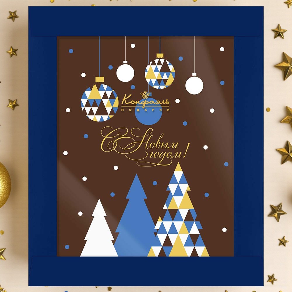 Состав: сахар, масло какао, сыворотка молочная сухая, тертое какао, пахта сухая, эмульгатор (лецитин соевый); декор – пищевые красители (Е171, Е132, куркумин). Продукция производится на предприятии, где используются арахис, кунжут, орехи, яичные и молочные продукты, злаки, содержащие глютен.