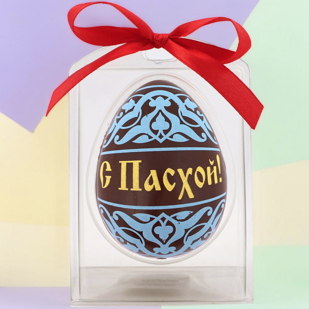 "С Пасхой" яйцо молочный шоколад (синий рисунок)