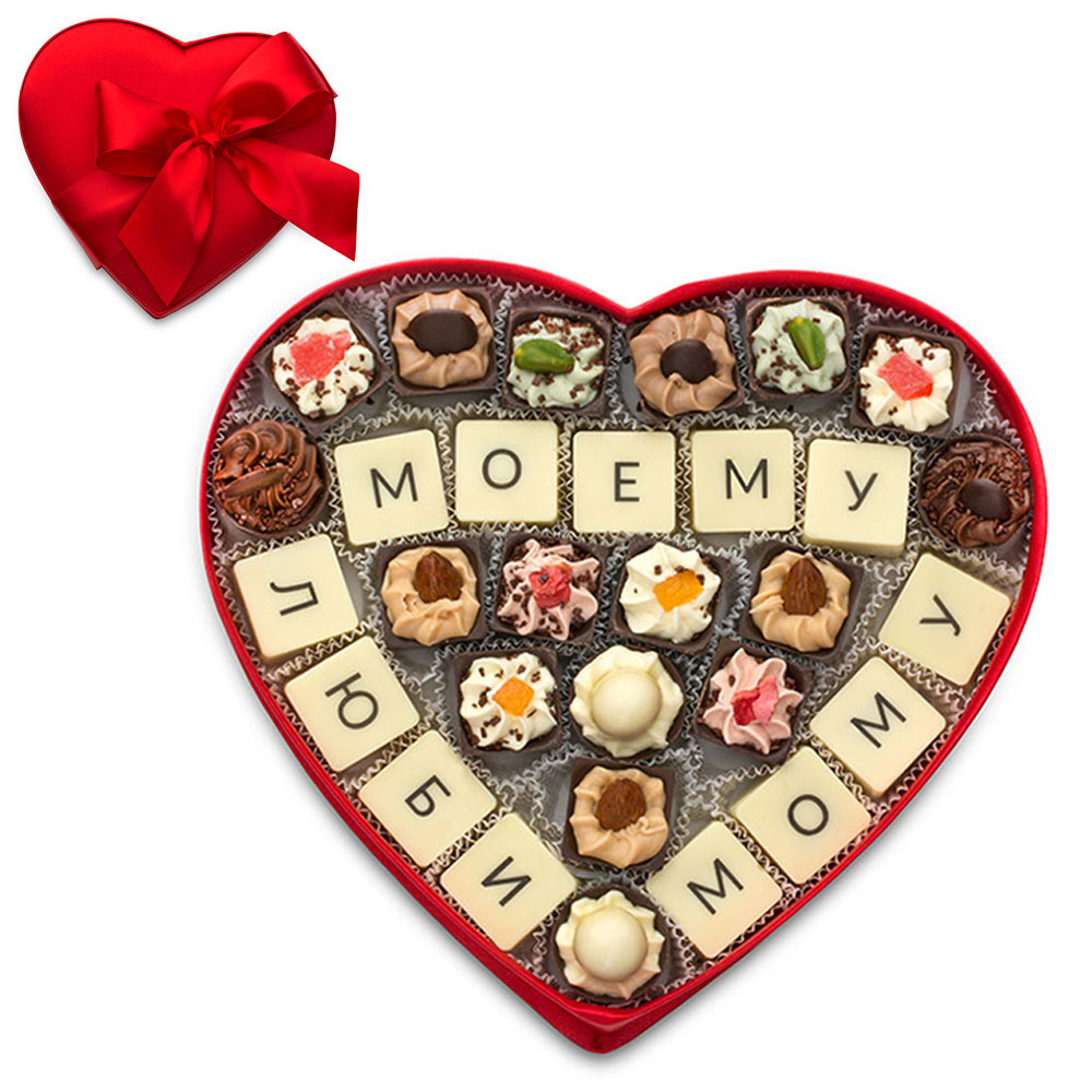 шоколадные массы – какао-масло, какао-тертое, сахар, молоко сухое цельное, молоко сухое обезжиренное, лактоза, эмульгатор (лецитин соевый), ароматизатор («Ванилин»); начинки – сахар, патока, фруктоза, какао-масло, какао тертое, молоко сгущенное (молоко цельное, сахар (сахароза, лактоза)), молоко сухое цельное, молоко сухое обезжиренное, рафинированные дезодорированные растительные масла, масло сладко-сливочное, натуральные концентрированные соки, клубника сублимированная, цукаты апельсиновых корочек, папайя сушеная, ядра орехов фундука, ядра орехов миндаля, ядра орехов фисташки, фундук жареный тертый, какао-порошок, кофе натуральный молотый, стабилизатор (мальтодекстрин), лактоза, коньяк (дистиллят коньячный, вода, сахар, натуральный пищевой краситель «Карамельный колер»), спирт этиловый ректификованный, консервант (сорбиновая кислота), эмульгаторы (лецитин соевый, Е471), ароматизаторы («Апельсин», «Ваниль», «Ванилин», «Фисташка», «Земляника», «Миндаль», «Кофе», «Кокосовые сливки»), натуральные пищевые красители «Карамельный колер», комплекс меднохлорофиллов; декор – пищевые красители (куркумин, Е120, Е132, Е171).