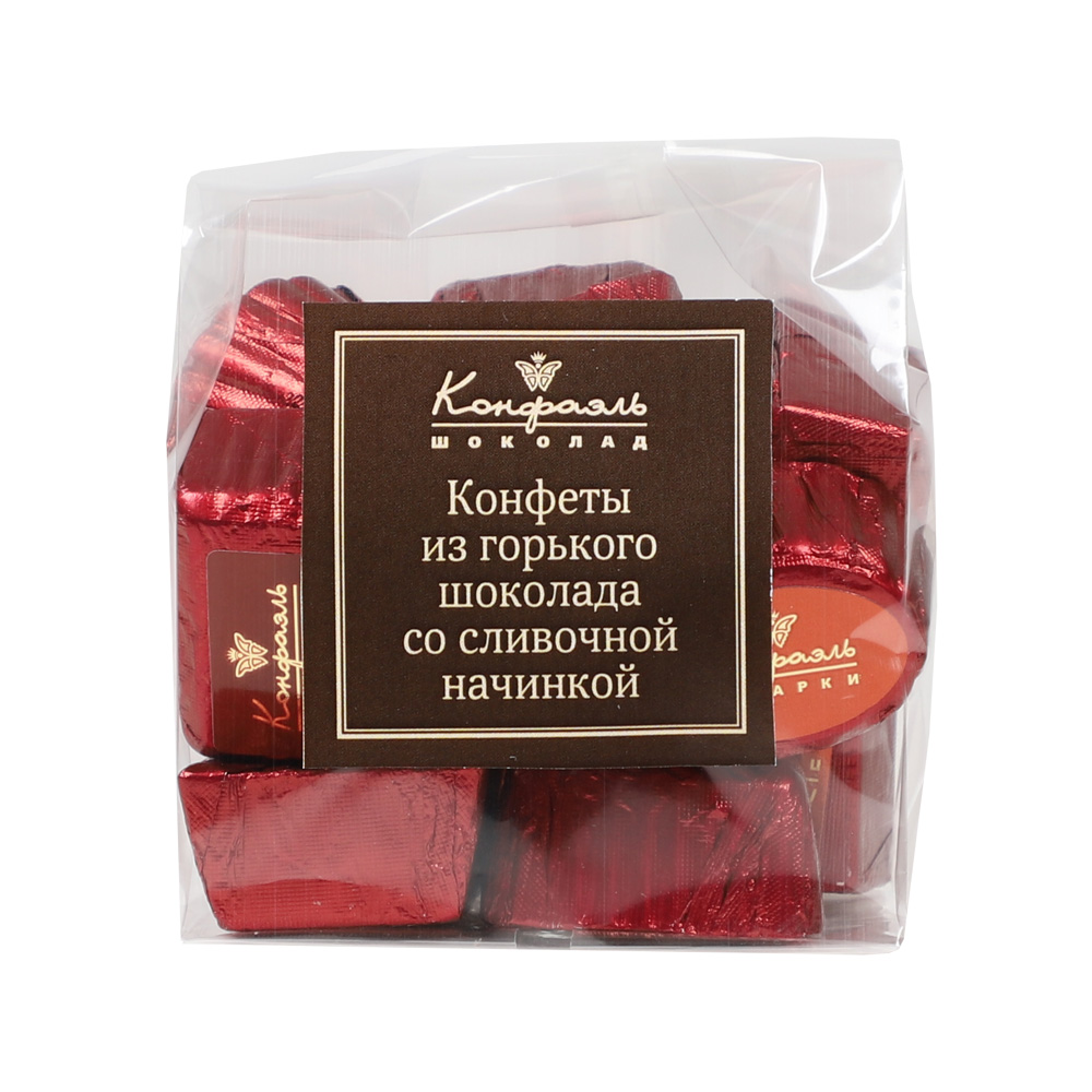 "Конфеты из горького шоколада со сливочными начинками ( бордовая фольга, микс)/90г"
