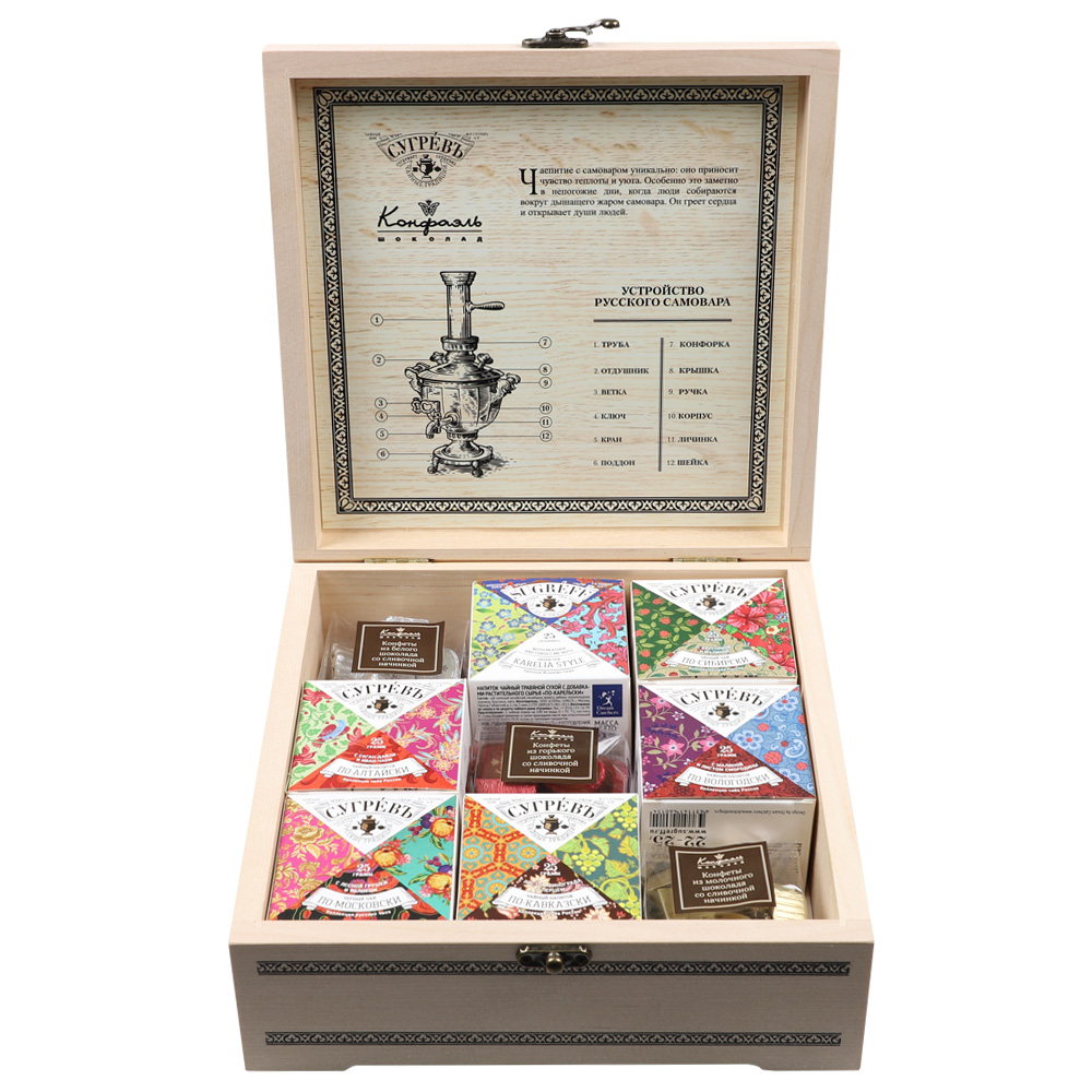 Шкатулка: набор чая и шоколадных конфет «Ассорти»