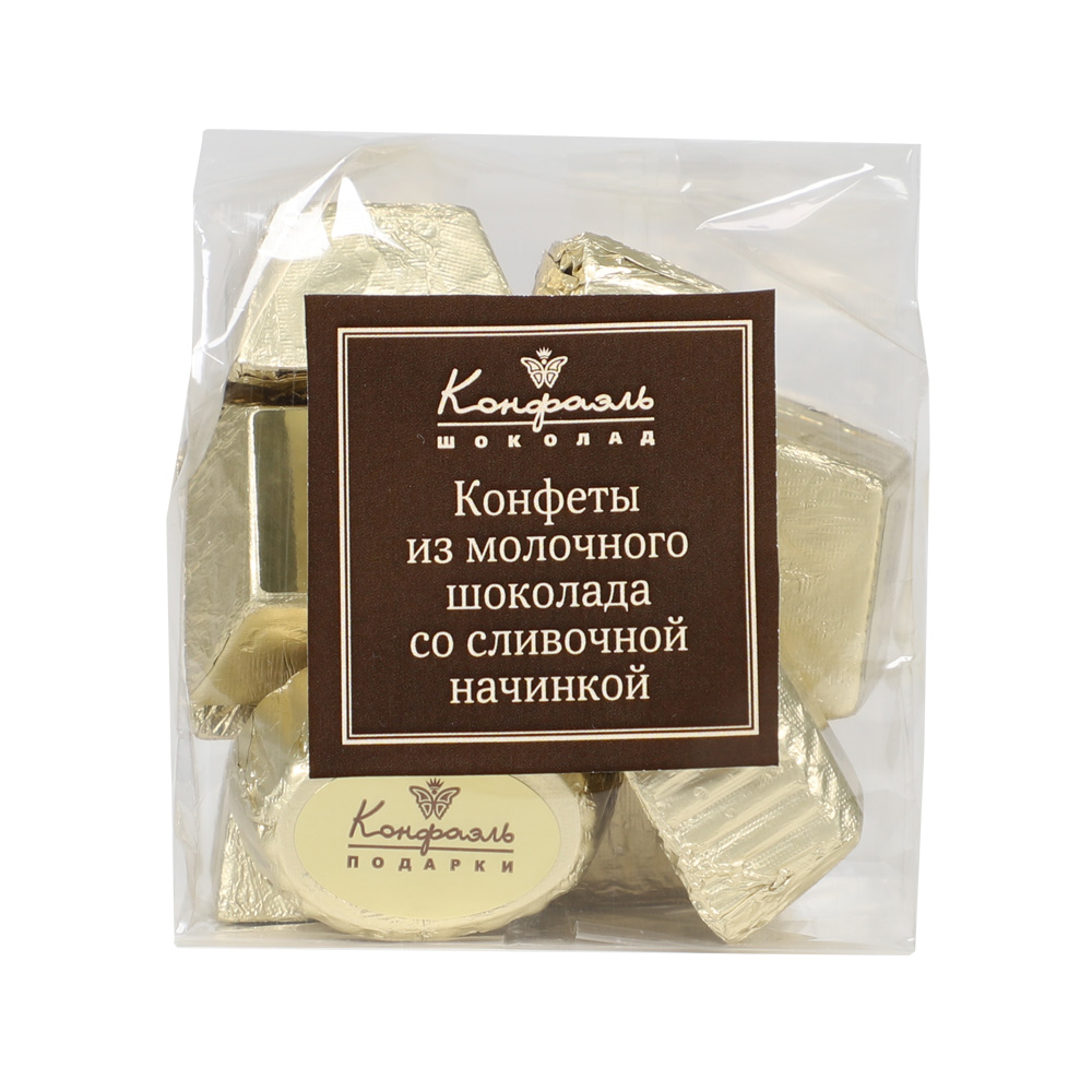 "Конфеты из молочного шоколада со сливочными начинками (золотая фольга фольга, микс)/90г"