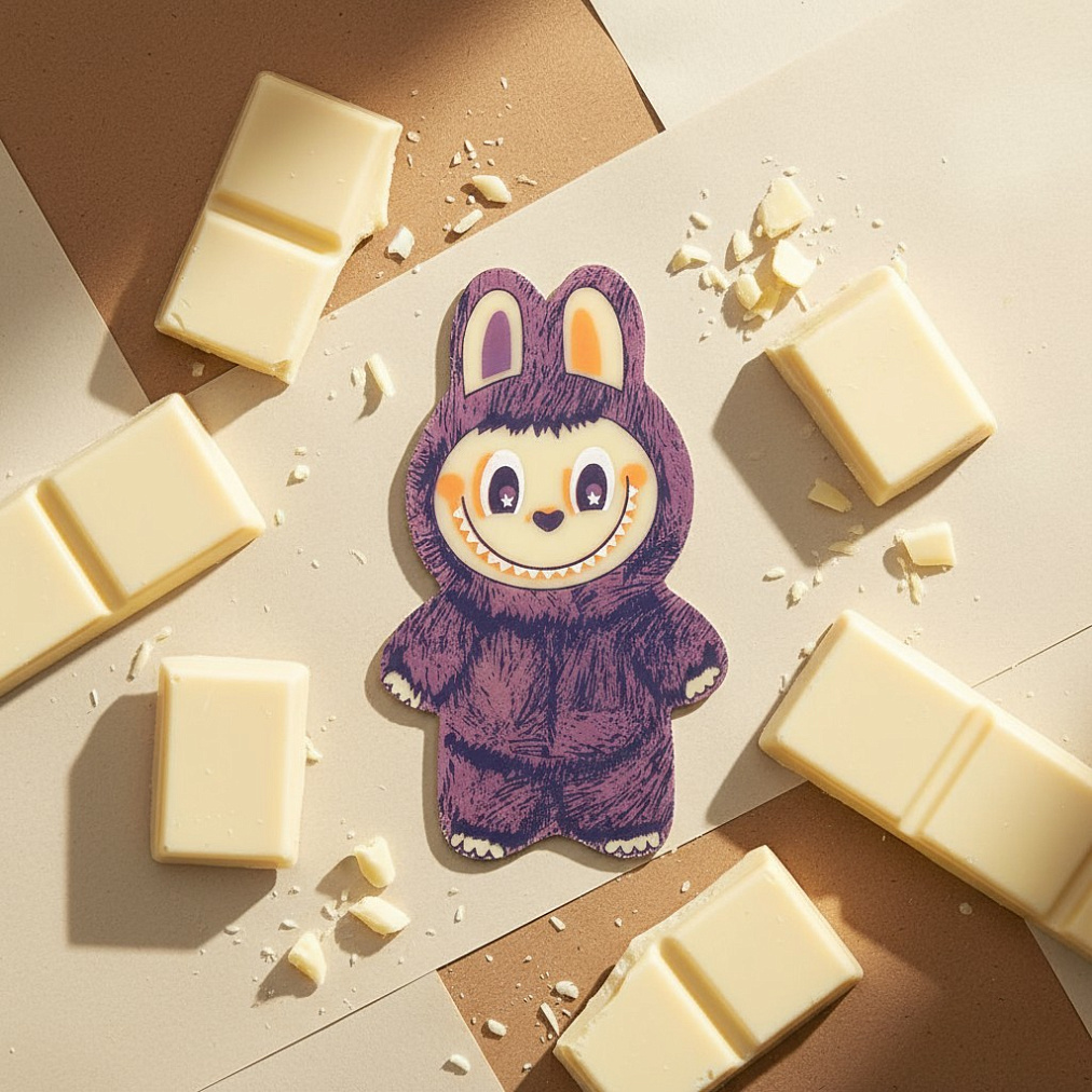 Откройте для себя очаровательный мини‑шоколад «Лабубушка» в фиолетовом исполнении! Нежная белая шоколадная фигурка с изысканным декором — трендовый сладкий подарок, который покорит сердце ребёнка и вызовет улыбку у взрослого.