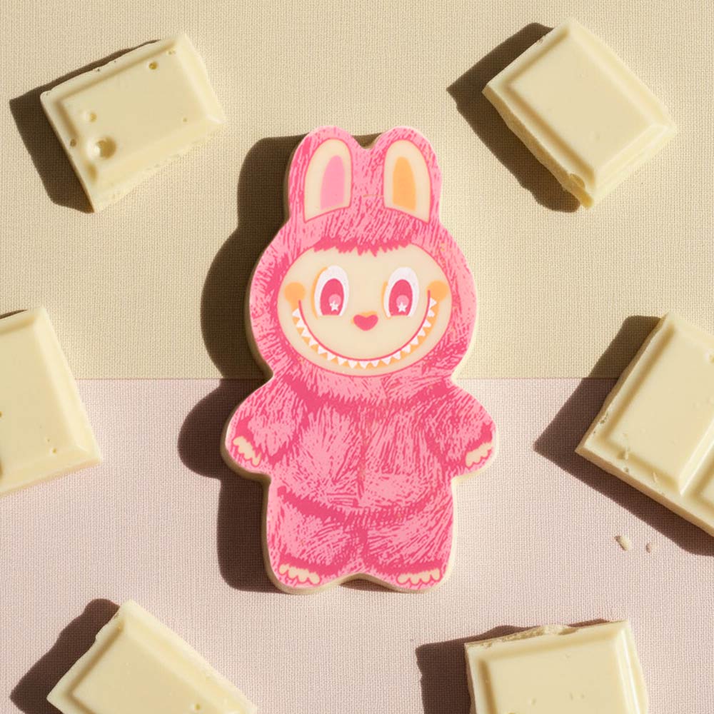 Ищете милый и стильный сладкий сюрприз? Представляем Вам «Лабубушка» — белый шоколад с розовым декором — идеальный мини‑формат для любого повода!