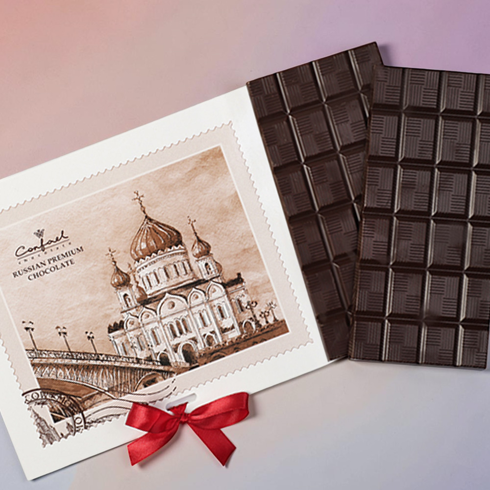 Сувенирная открытка «Храм Христа Спасителя» из горького шоколада в эстетичной упаковке - достойный презент к любому празднику для ваших близких и друзей.