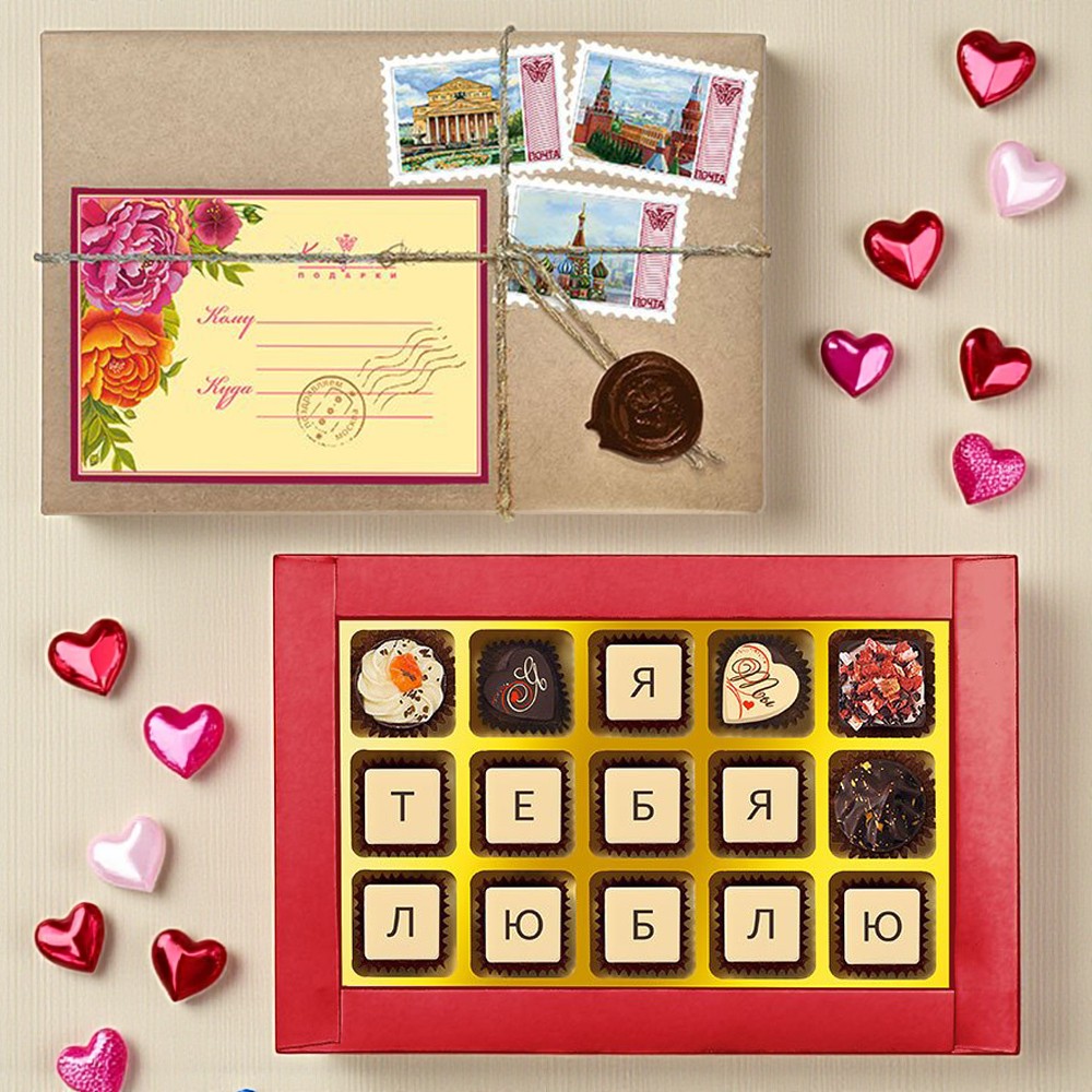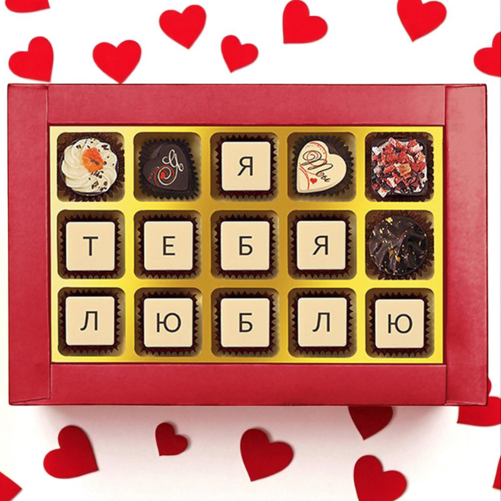 Шокотелеграмма "Я люблю тебя" хранит в себе не только романтические слова, но и вкуснейшие конфеты.