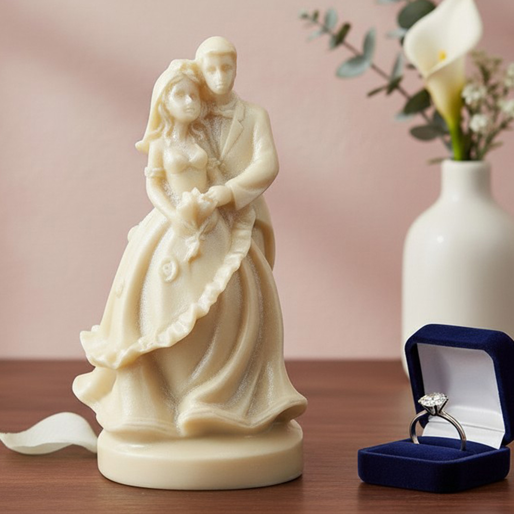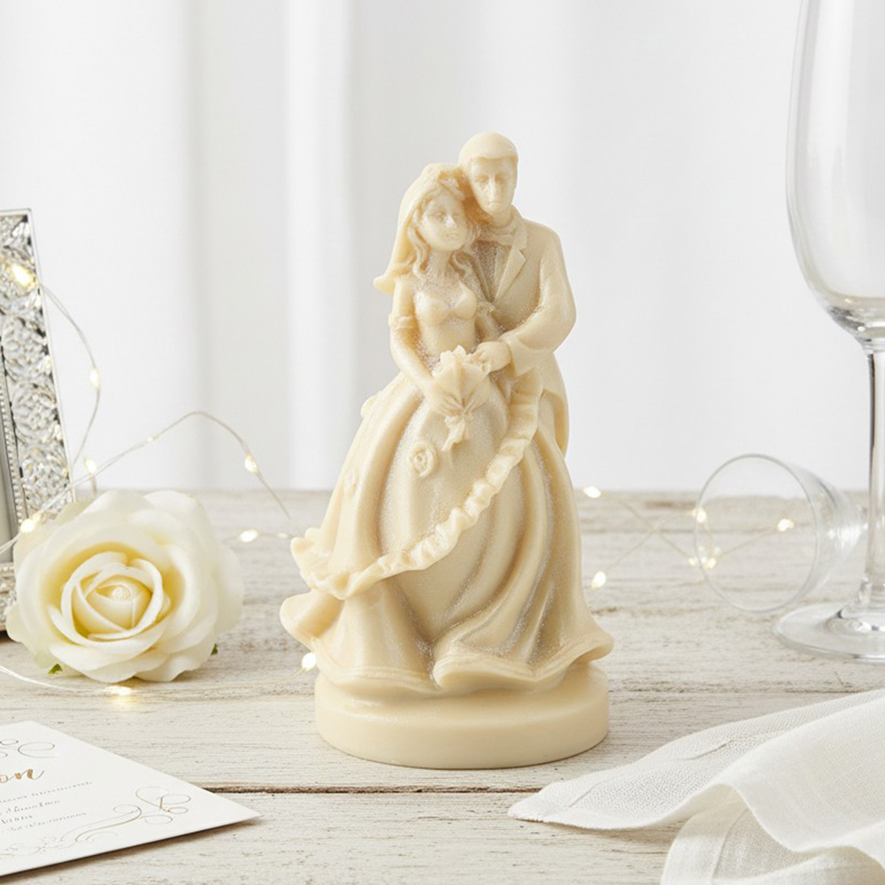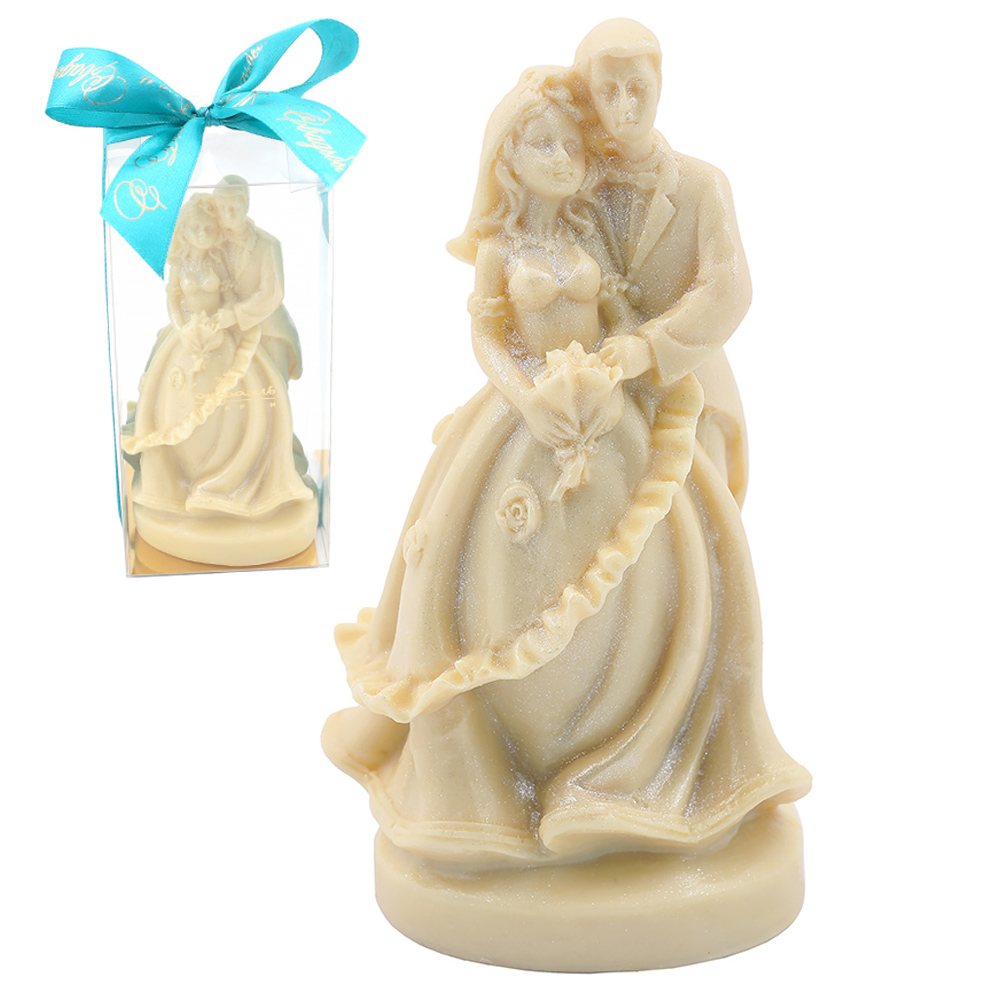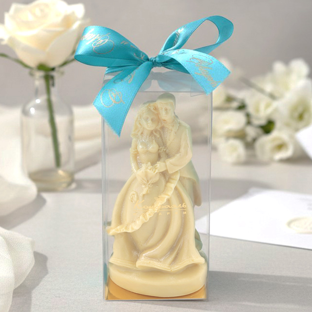 Их запечатленные в белом шоколаде образы вы можете как преподнести в виде подарка на праздник, так и сделать частью торжества, украсив стол брачующихся.
