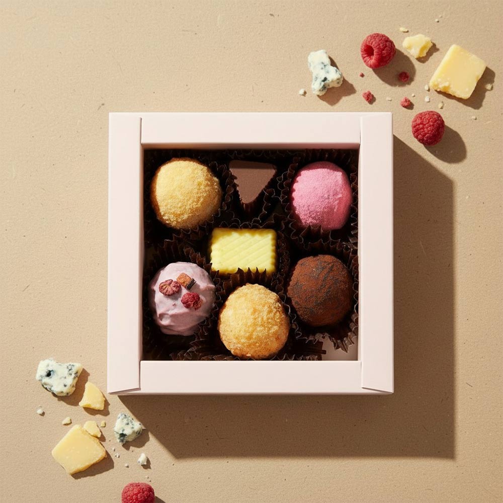Фабрика Конфаэль представляет новую гастрономическую коллекцию конфет, в которой шоколад встречается с благородными сырами. Это изысканное сочетание вкусов, созданное для тех, кто любит необычные десерты и ценит тонкие гастрономические акценты.