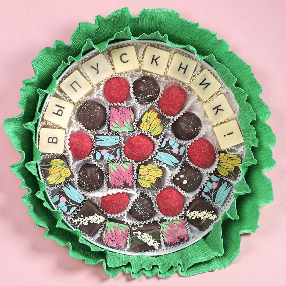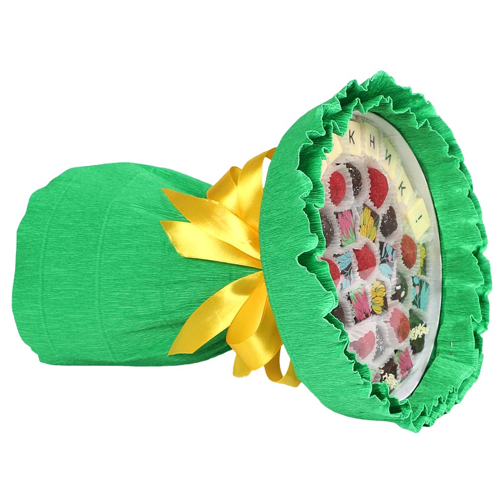 «Конфаэль» поможет вам, предложив особый набор из вкуснейших конфет, упакованных в виде охапки невиданных цветов.