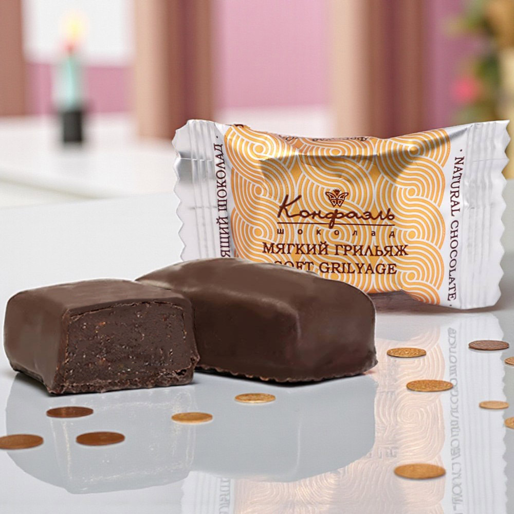 Конфеты глазированные горьким шоколадом «Мягкий грильяж»